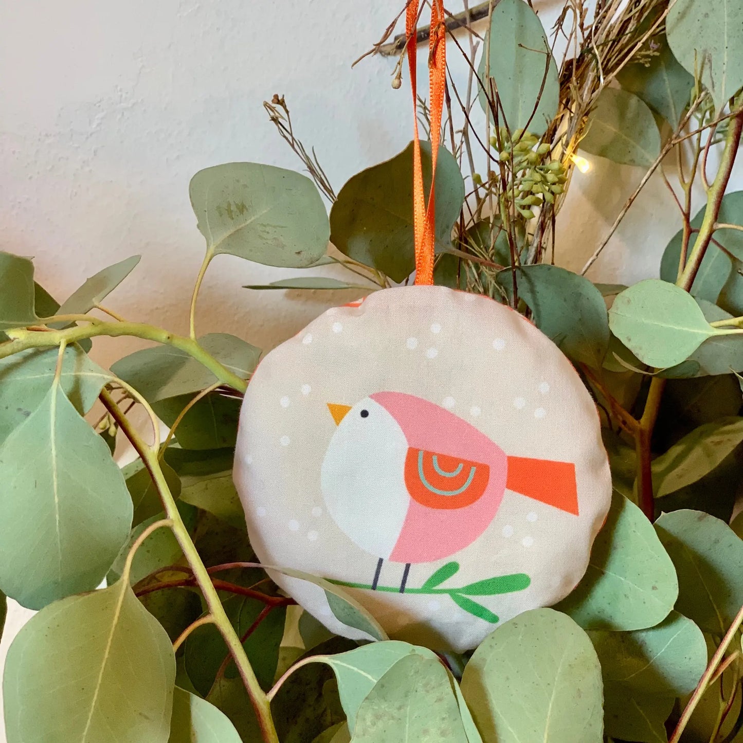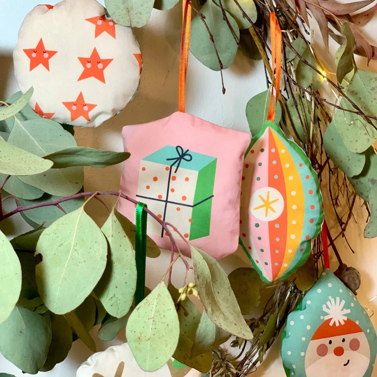 Naai je eigen kerstversiering met die paneel van La blu. Je maakt er 15 'kerstballen' mee. Voor een beetje volume in de versieringen naai je een laagje volumevlies mee