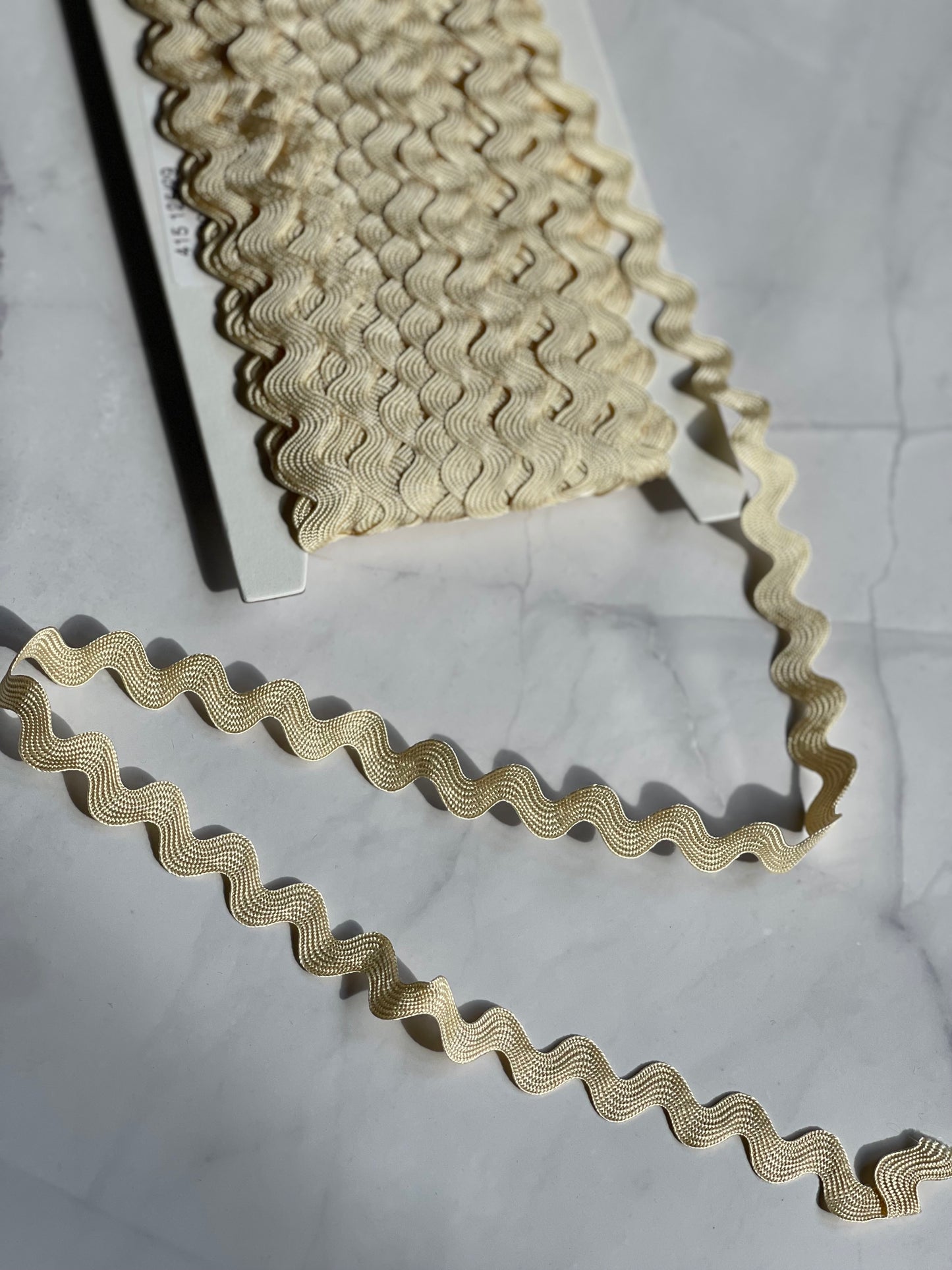 Zigzag band 8 mm - Ivoor wit. Het strookje dat zigzagt zelf is 8 mm breed, de totale hoogte van het band is 13mm.