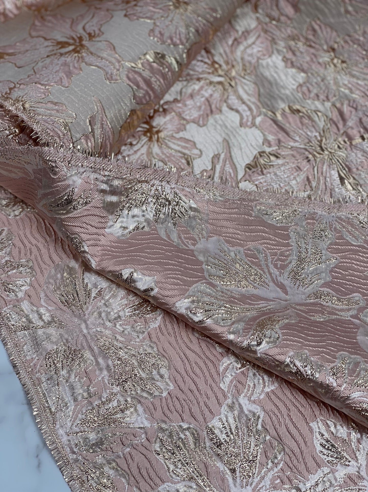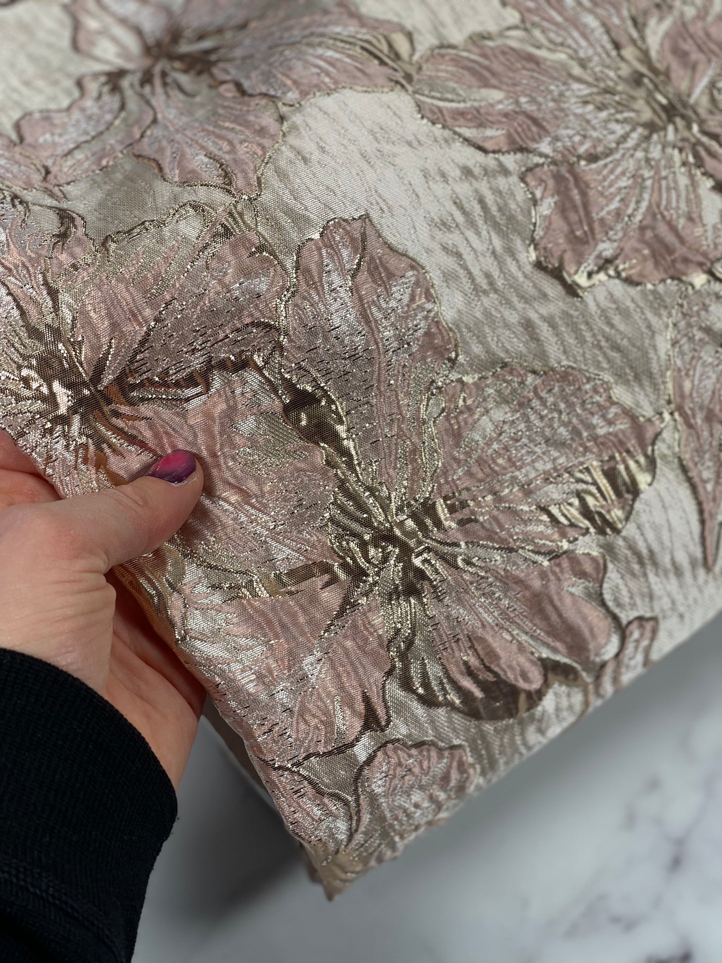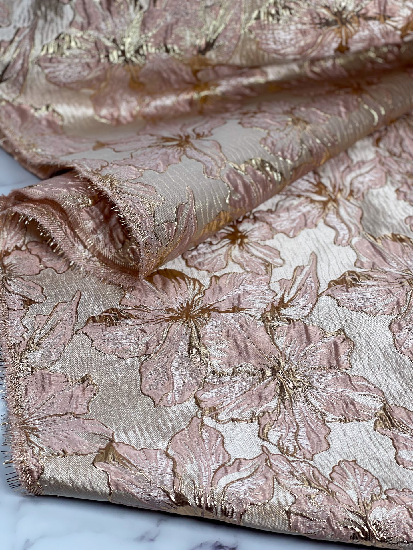 Shiny Jacquard Flowers - Dusty Pink