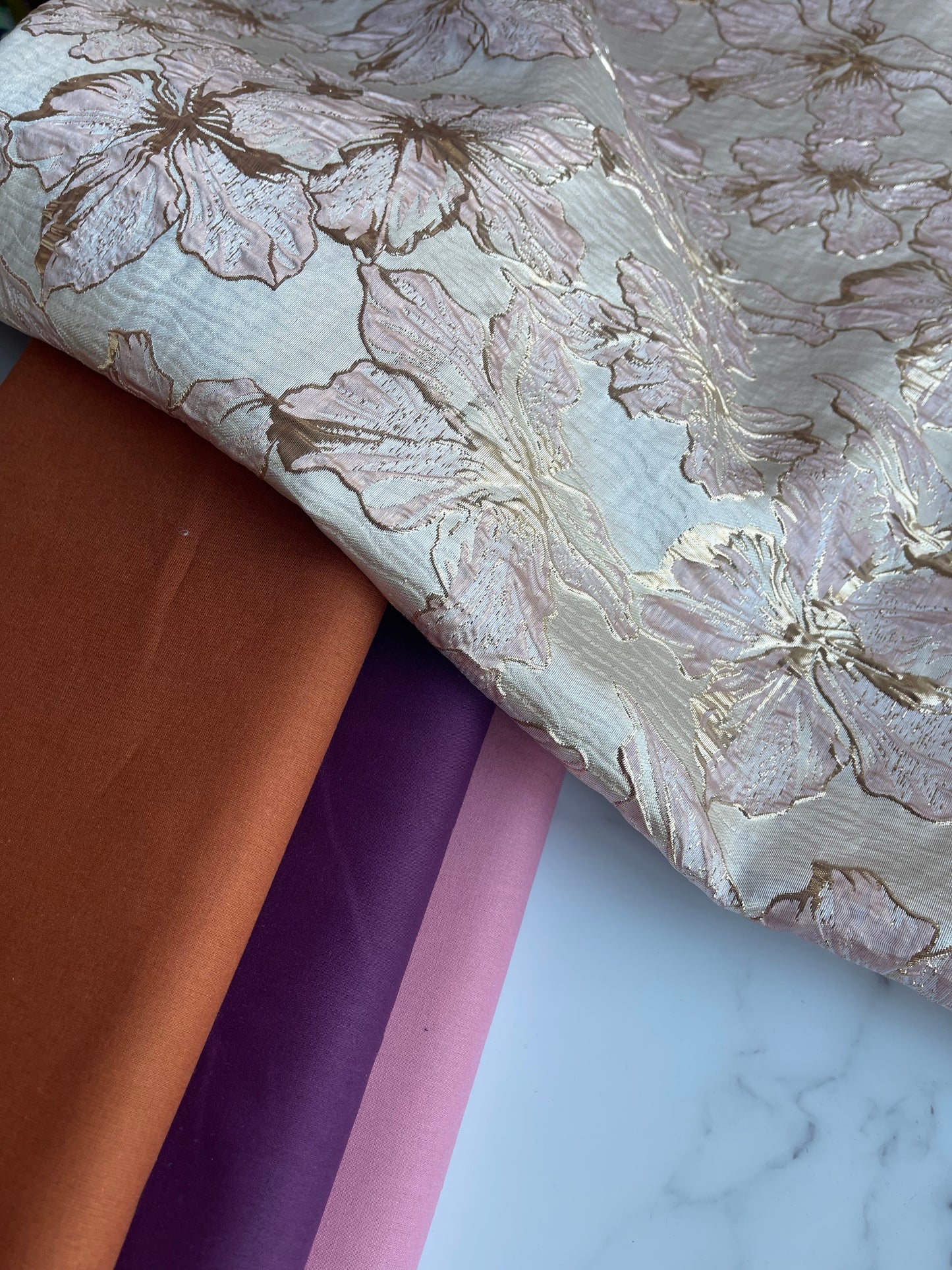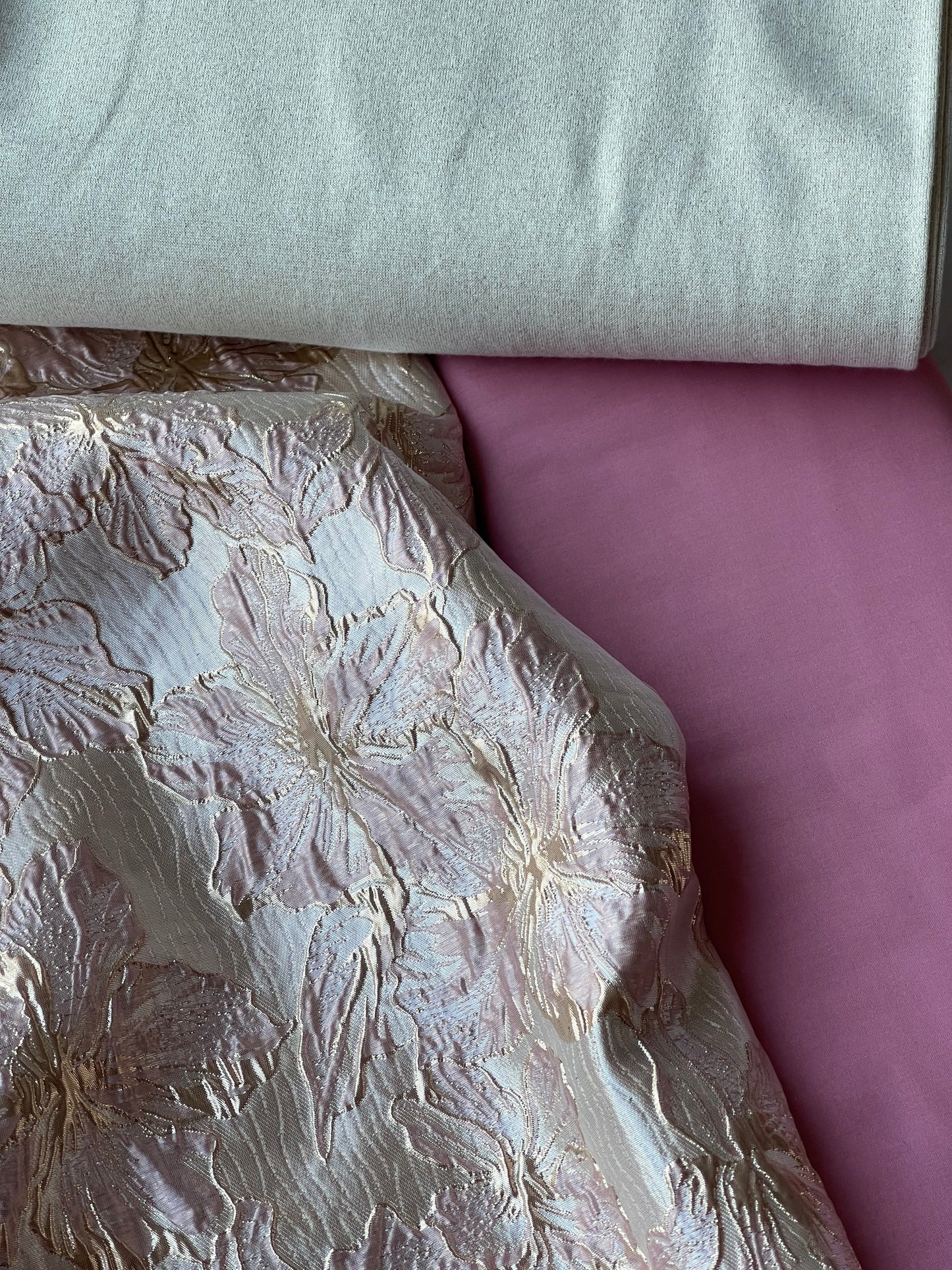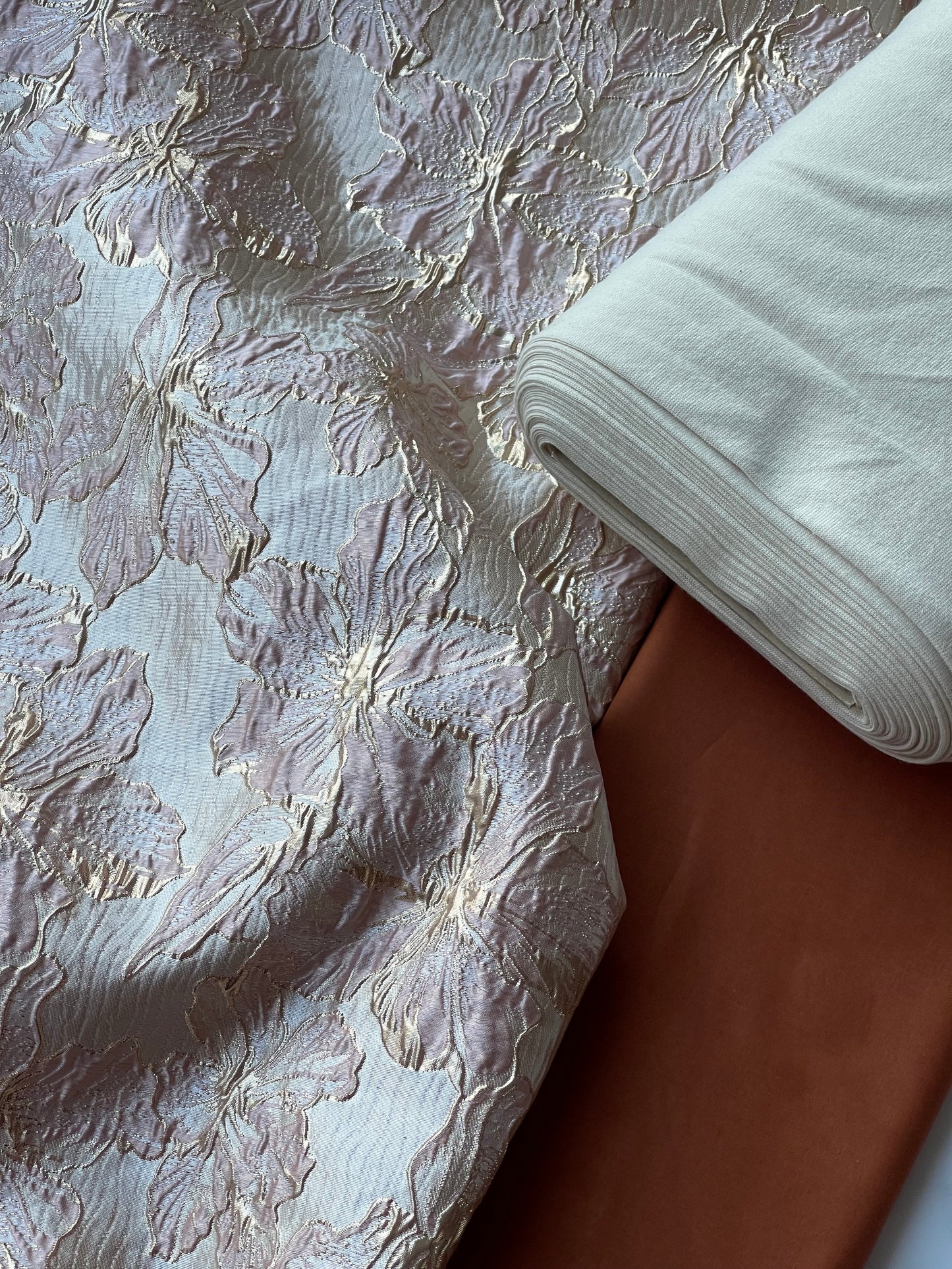 Shiny Jacquard Flowers - Dusty Pink