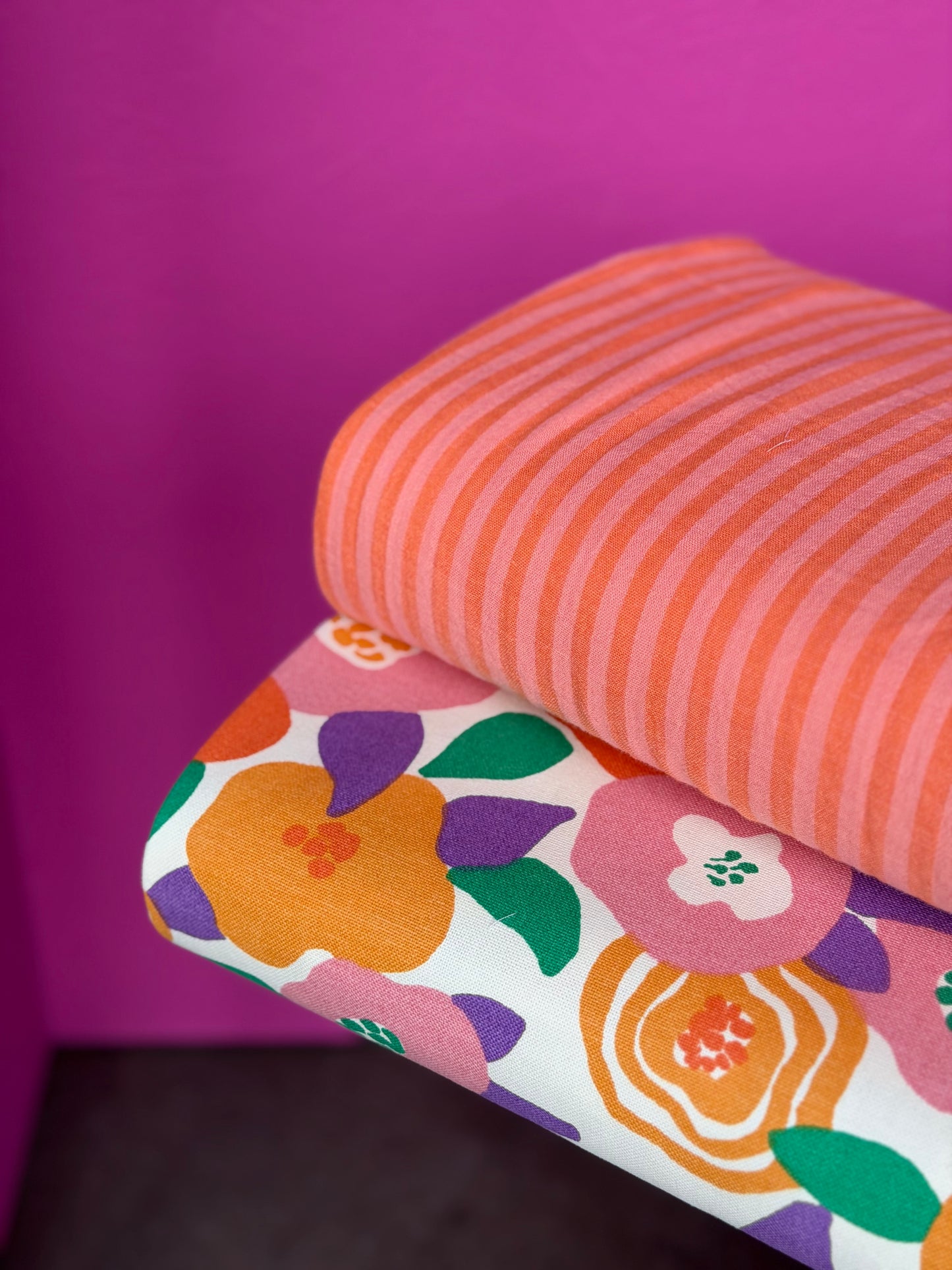 Canvas stof Bloemen Vivia Roze Geel
