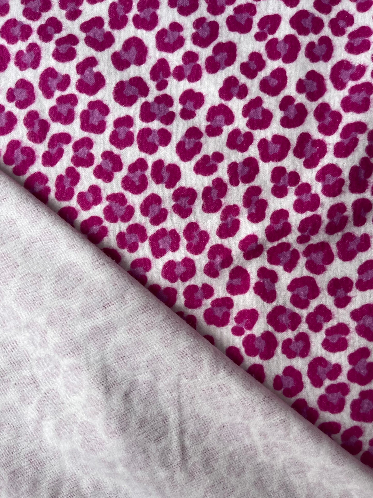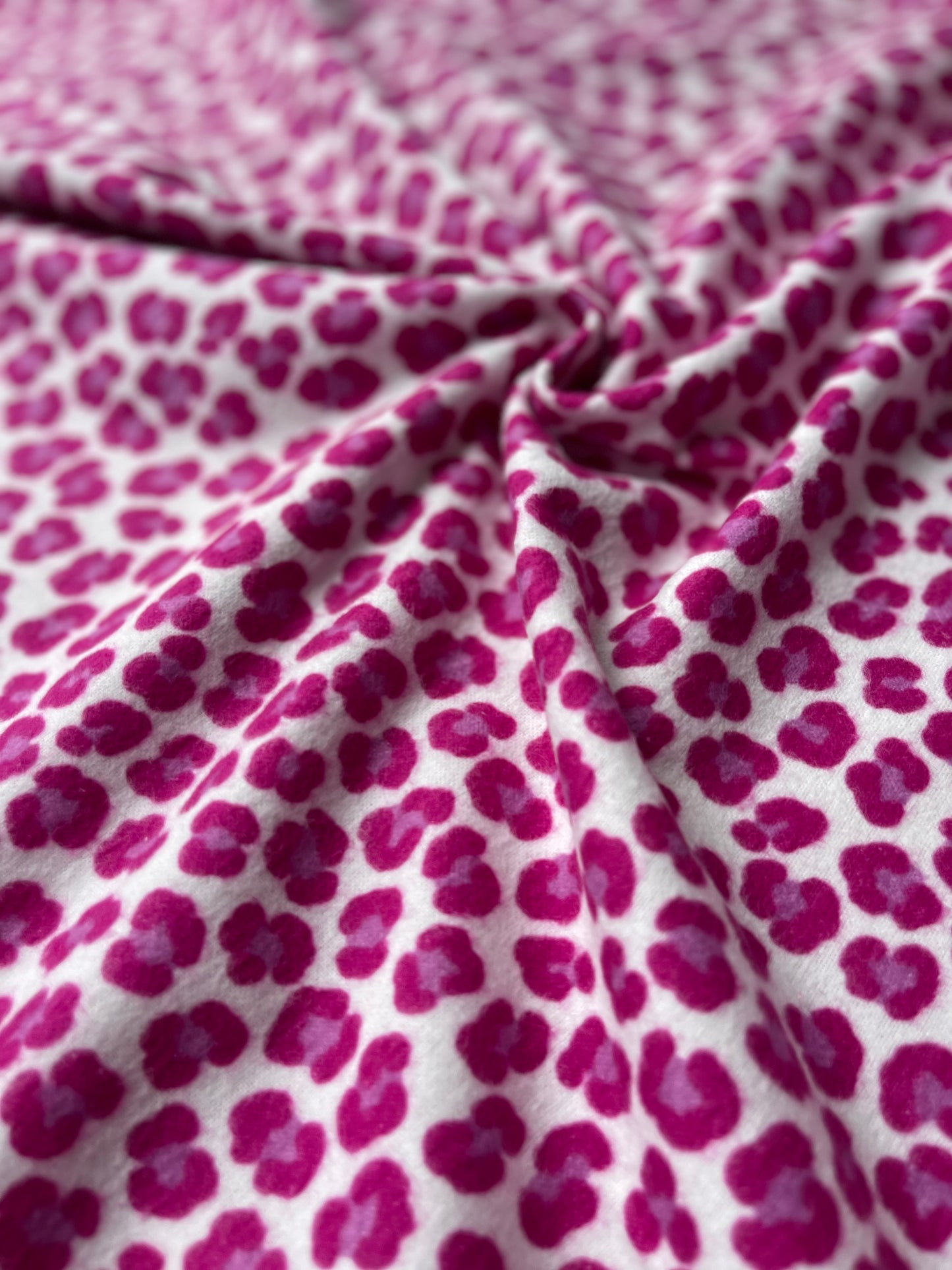 Leopard Flanel Stof - Wit Roze. Een fijne flanel stof van 100% katoen.