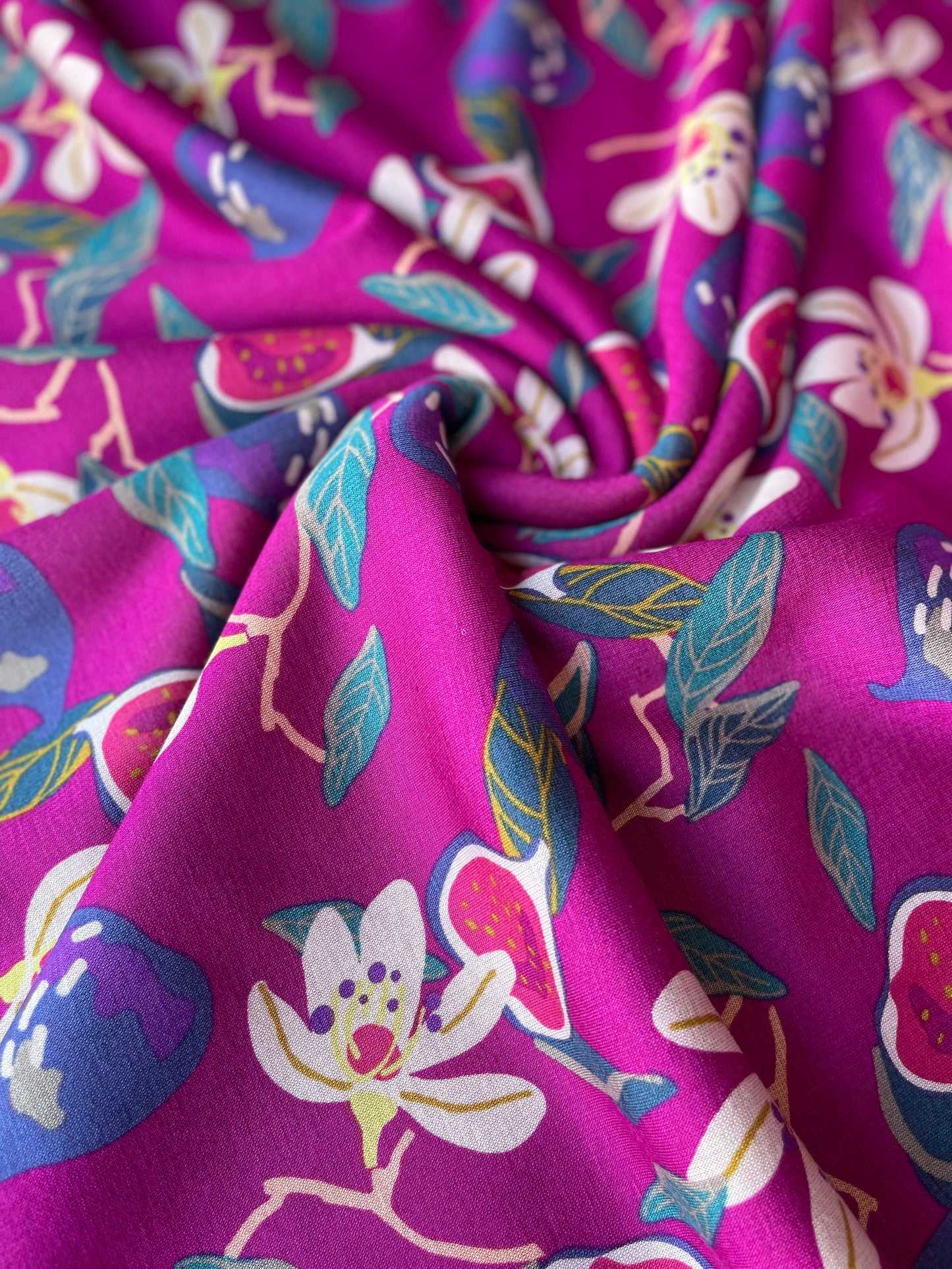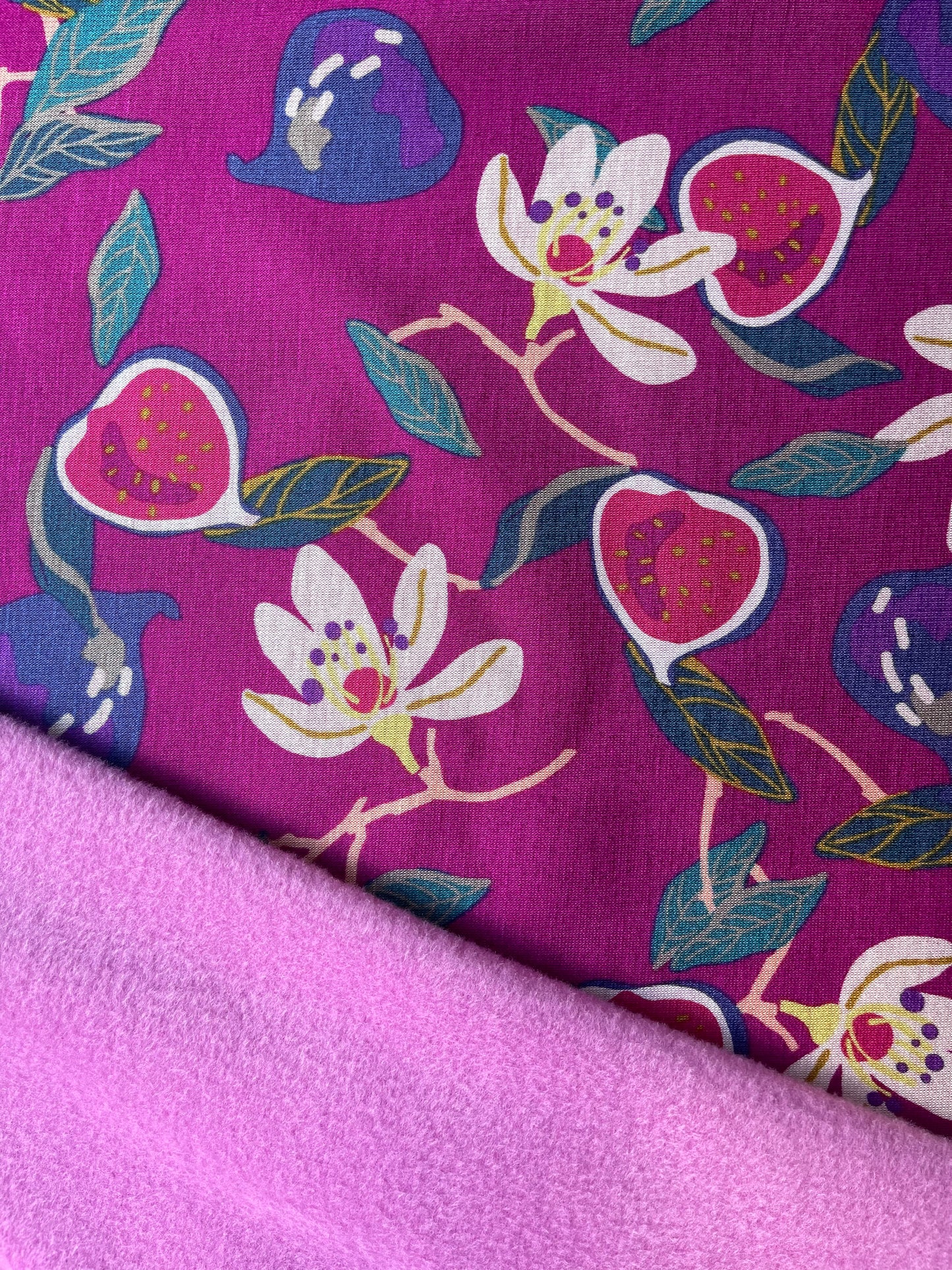 Vijgen Jogging Fleece Stof - Fuchsia. De buitenkant van deze stof ziet eruit als een jogging stof, de binnenkant heeft een fleece laagje.
