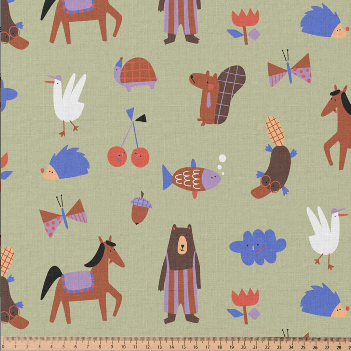 Animal Party Groen - Poplin Katoen