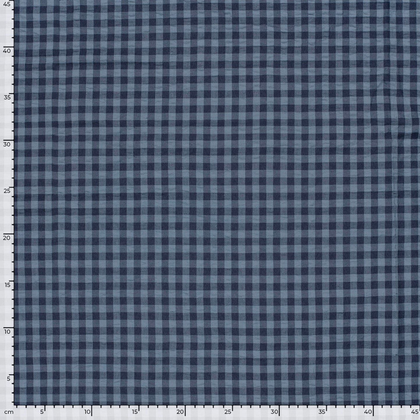 Seersucker Ruit Katoen - Blauw. Een soepele seersucker in een mix van katoen en een klein beetje polyester voor het kleurbehoud in de stof.