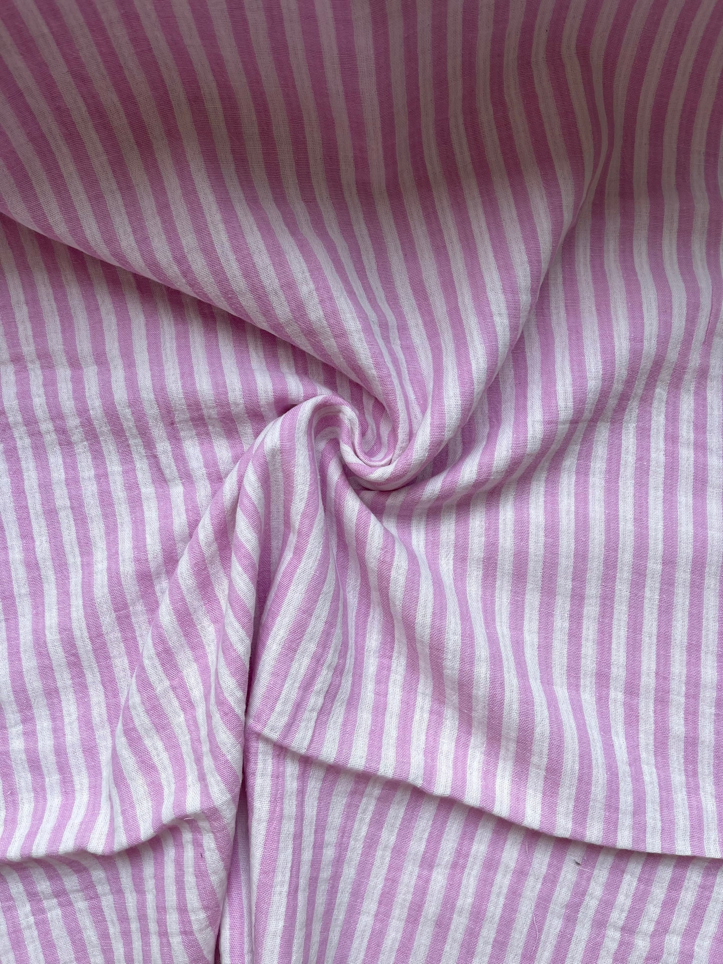 Double gauze Strepen dubbelzijdig - Roze Wit.