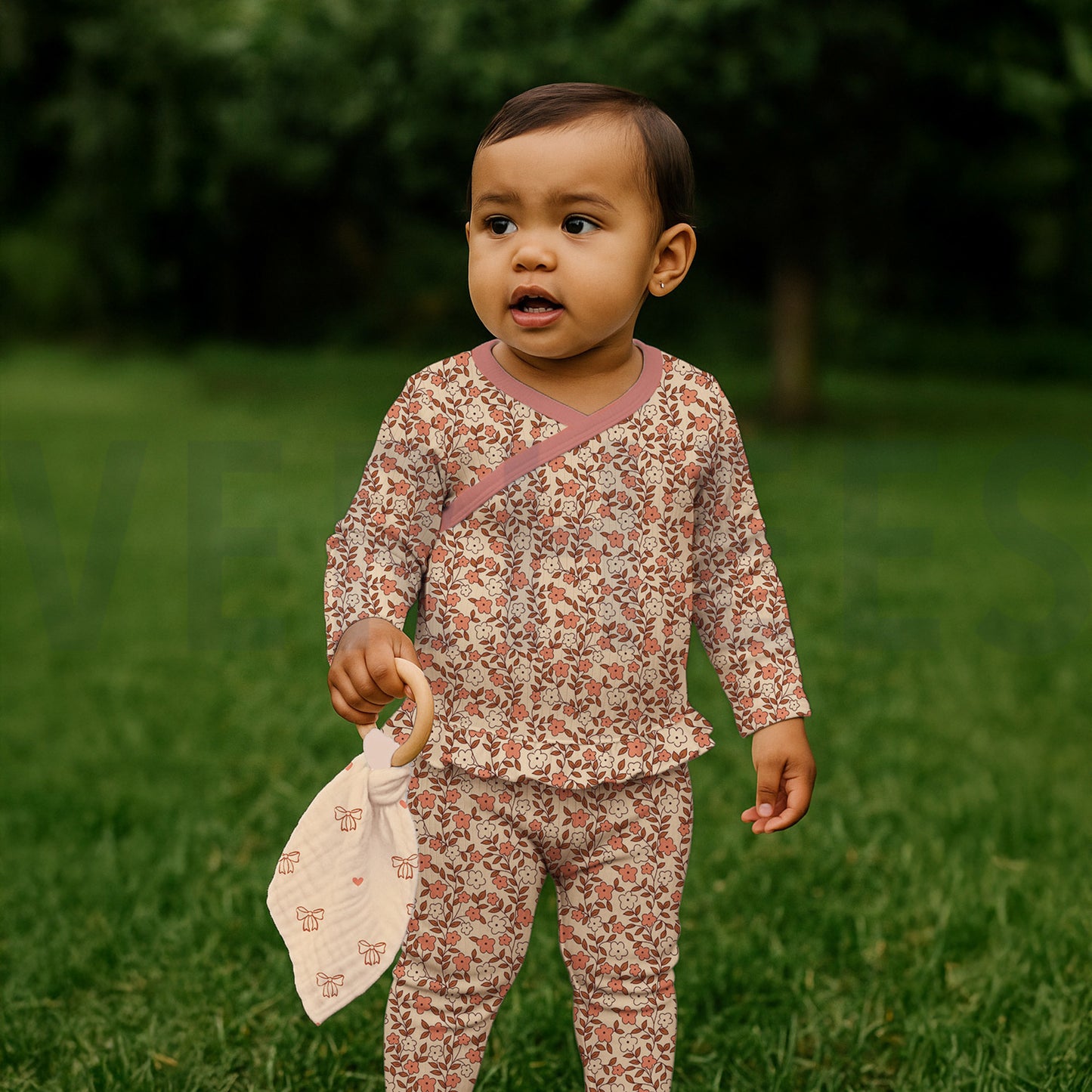 Rib Jersey Bloemen Biologisch - Naturel Peach