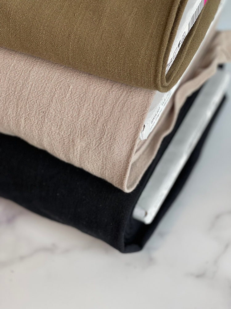 Hier vind je alle stoffen van 100% linnen of als een mix met andere materialen. Linnen is een natuurlijke stof die heerlijk ademt. De stof verwerkt makkelijk en is daarom ook geschikt om te naaien als je nog niet veel ervaring hebt.