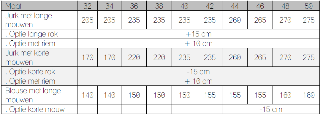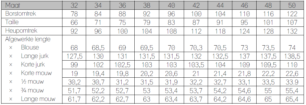 - Patroondelen in de maten 32 (BO 78) – 50 (BO 122)