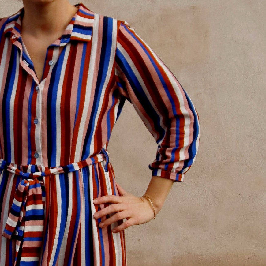 May-Belle is een patroon dat zowel kan gebruikt worden voor het maken van blouses als jurken voor dames met maten van 32 – 50 (borst 78-122 cm). Het patroon van de May-Belle werd ontworpen voor niet-elastische stoffen zoals katoen, double gauze, voile, linnen, crêpe, viscose,….