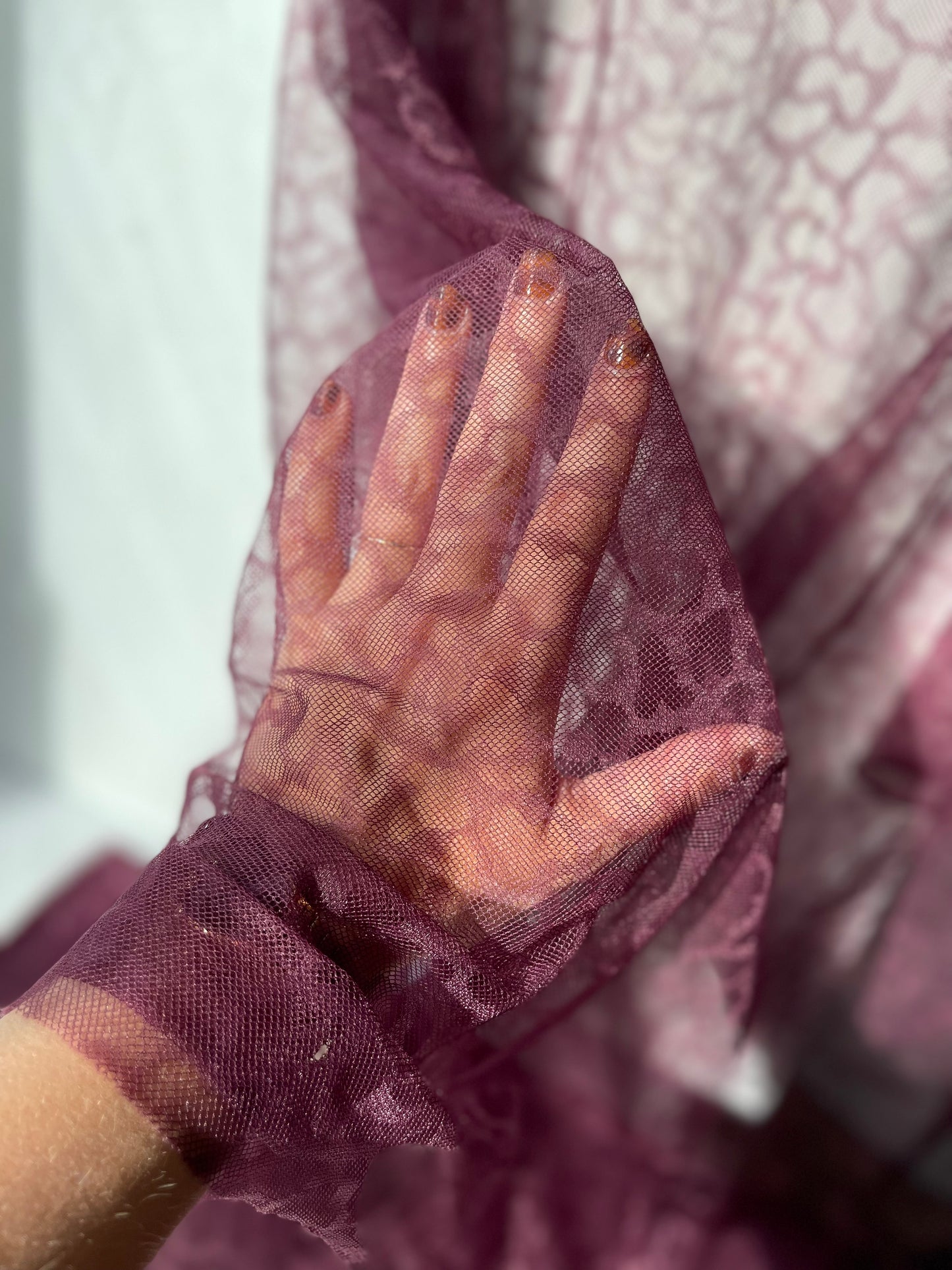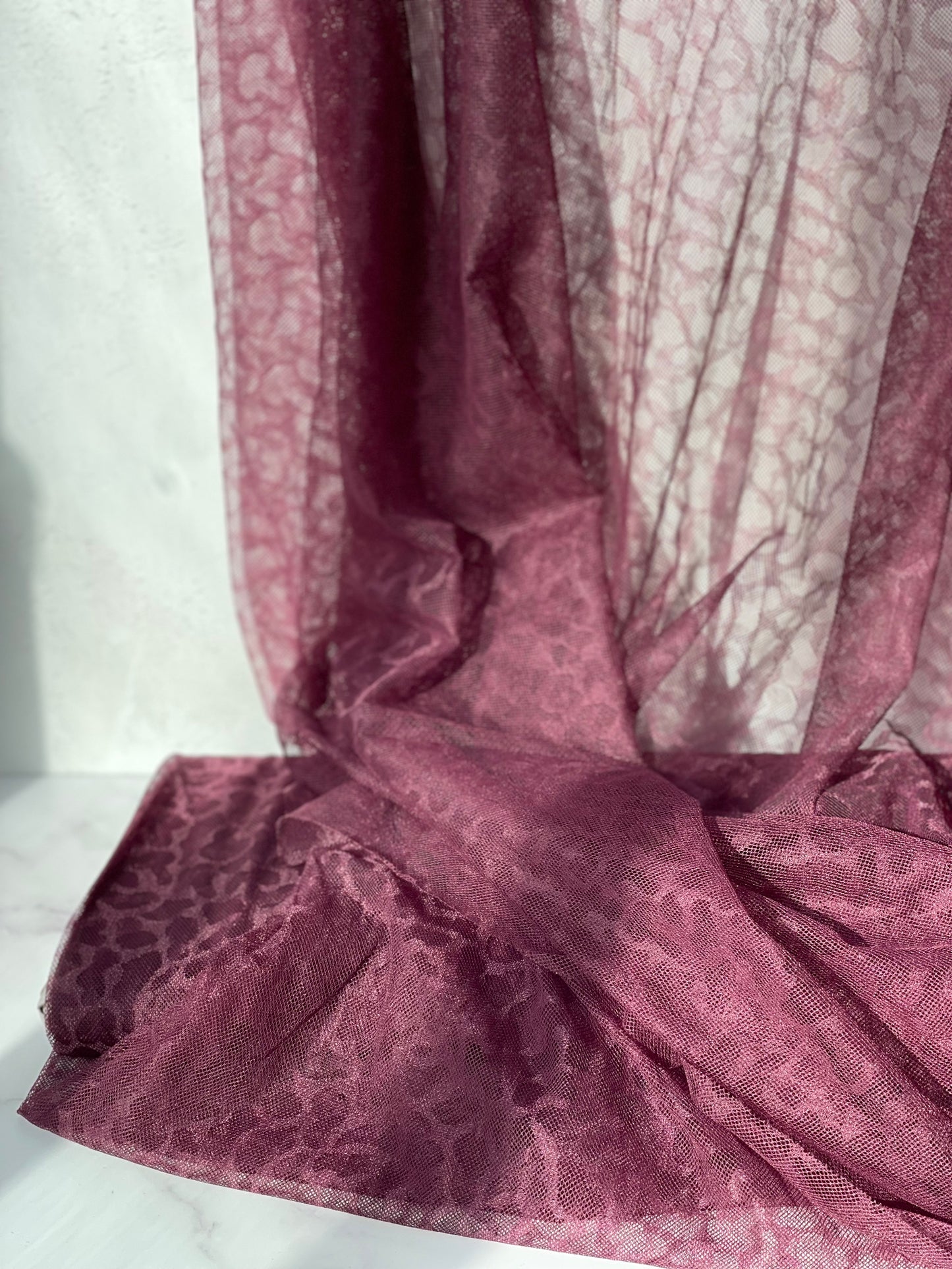 Animal Tule Rekbaar - Burgundy. Deze licht rekbare tule heeft een soort dierenprint erin. De stof is transparant en sluit helemaal aan bij de trendkleur van dit najaar: burgundy.