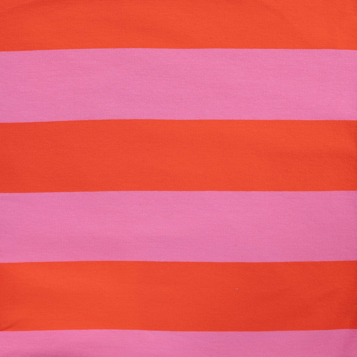 Coupon 50 cm x stofbreedte: French Terry Strepen yarn dyed - roze met oranje