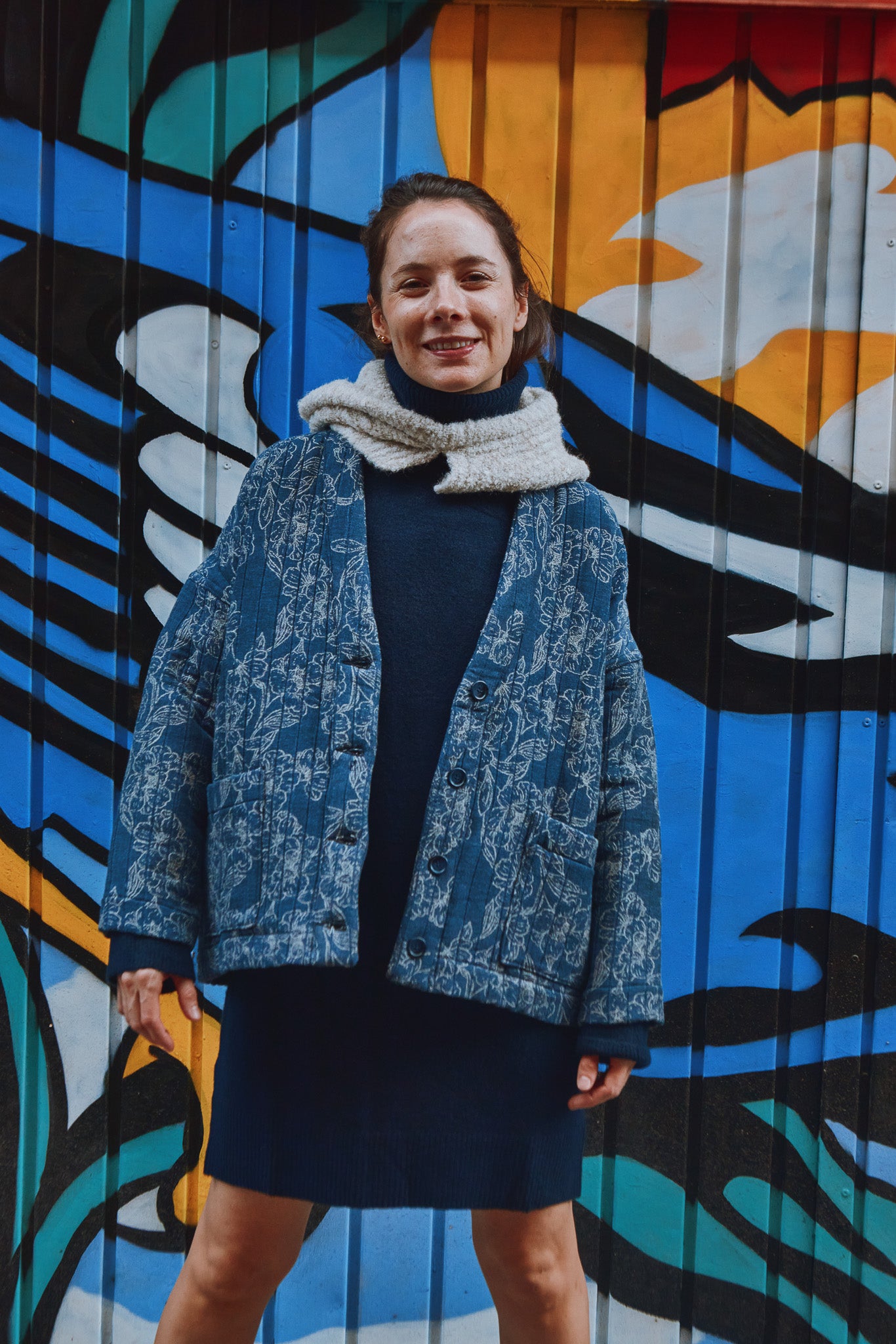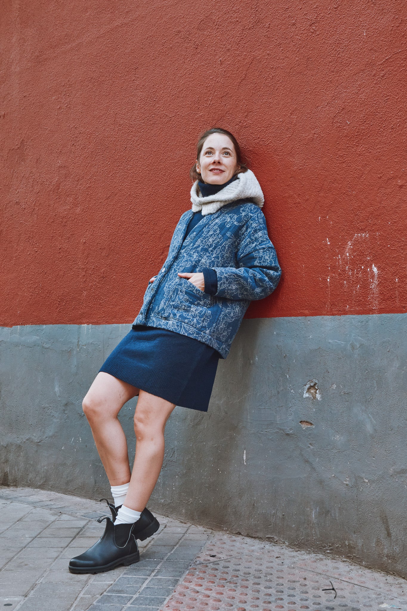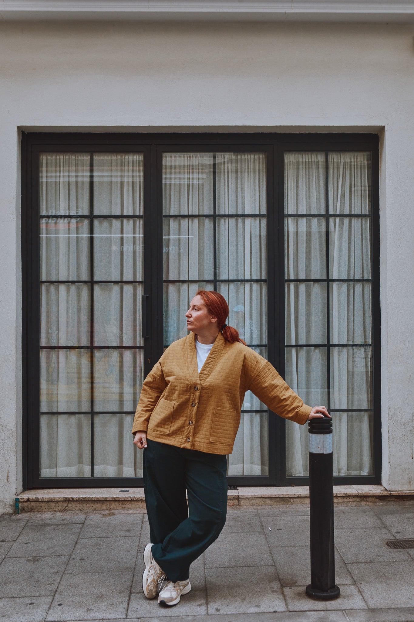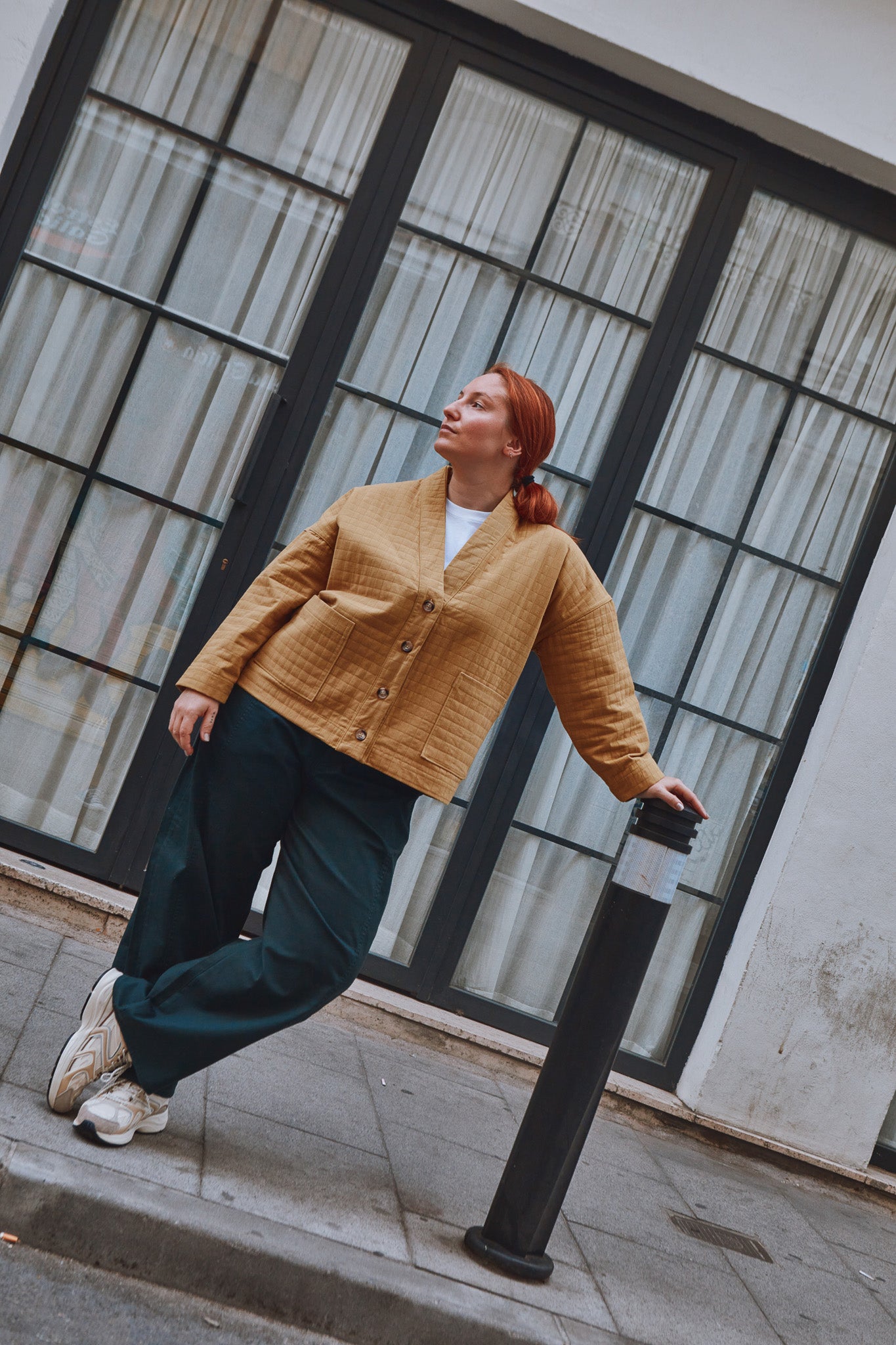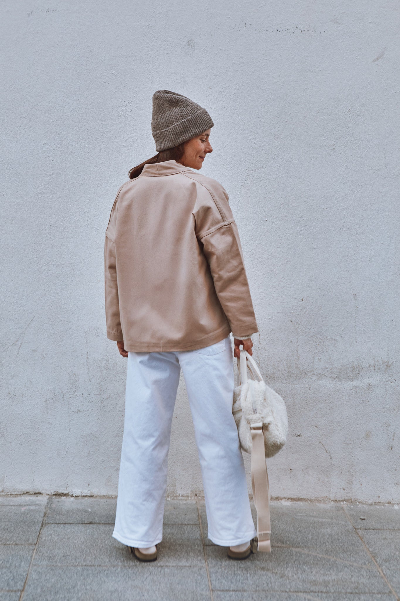 Macao is a jacket or cardigan pattern with loose fit and dropped shoulders. It offers a choice of long sleeves or sleeveless. A shaped, lined neckline band gives structure to the garment. Flat-felled seams ensure a strong and impeccable finish.
