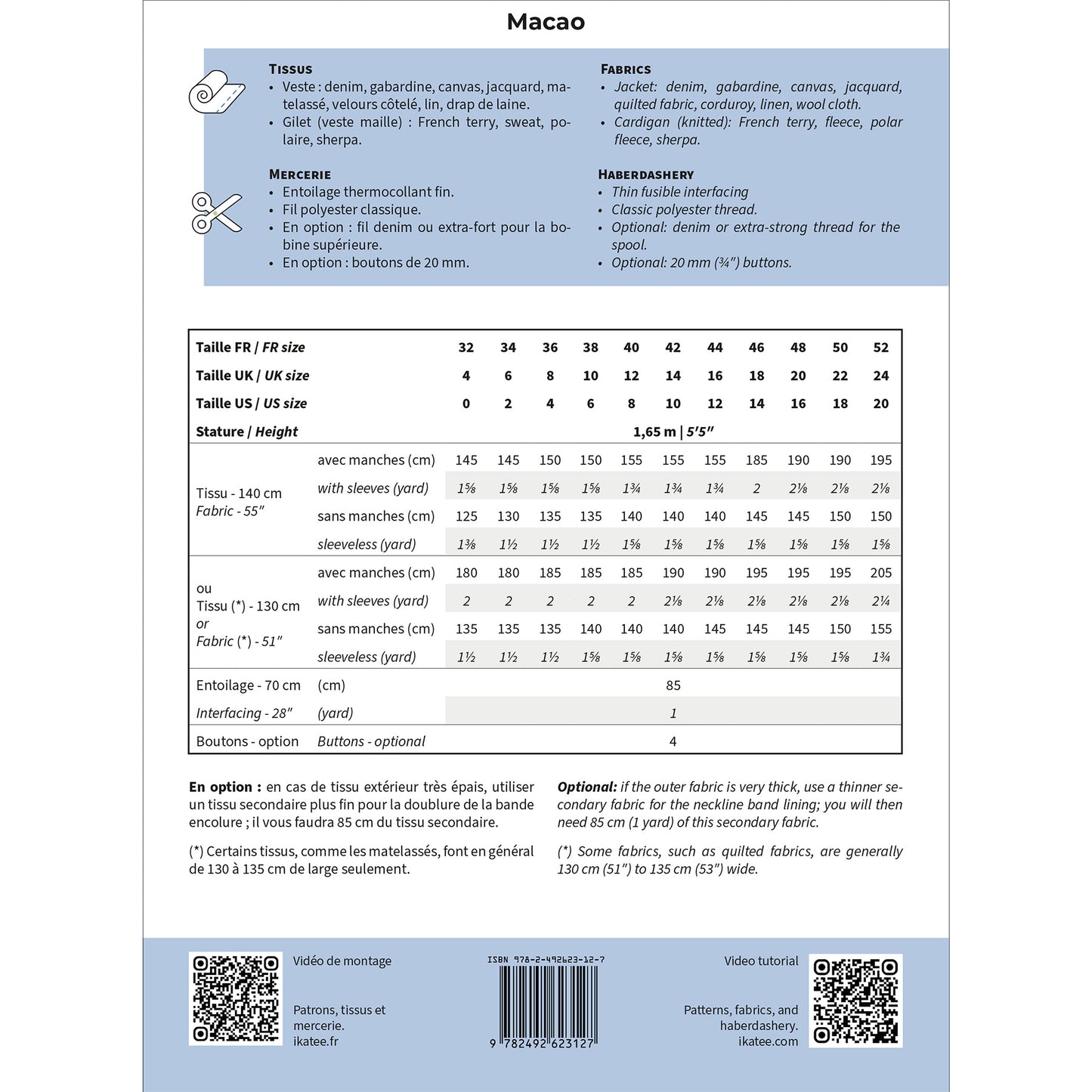 MACAO - Jacket Woman - Paper Sewing Pattern - Ikatee