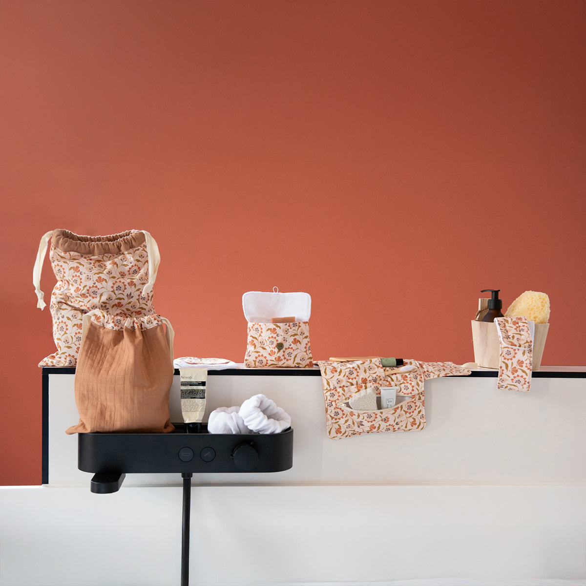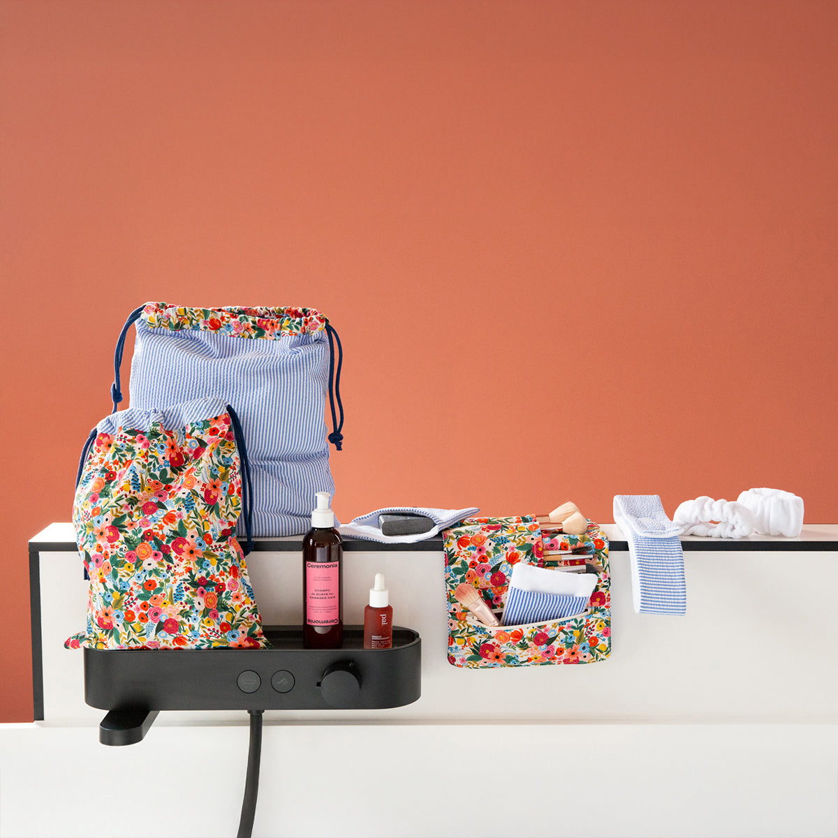 With this paper pattern you'll find 6 accessory patterns for the bathroom and travel.