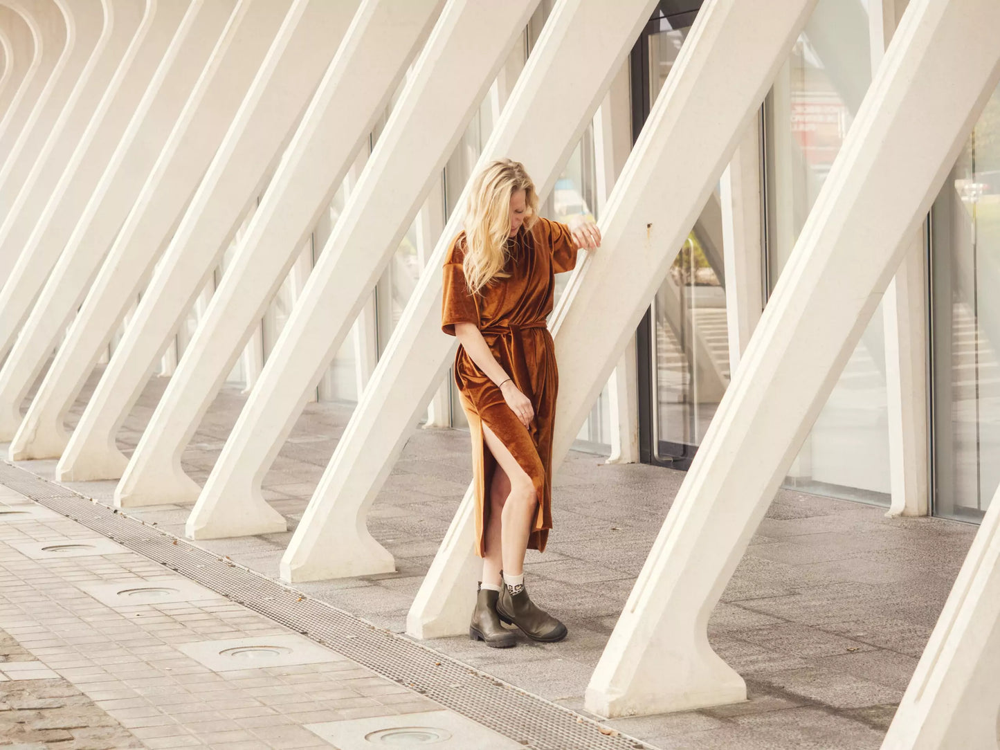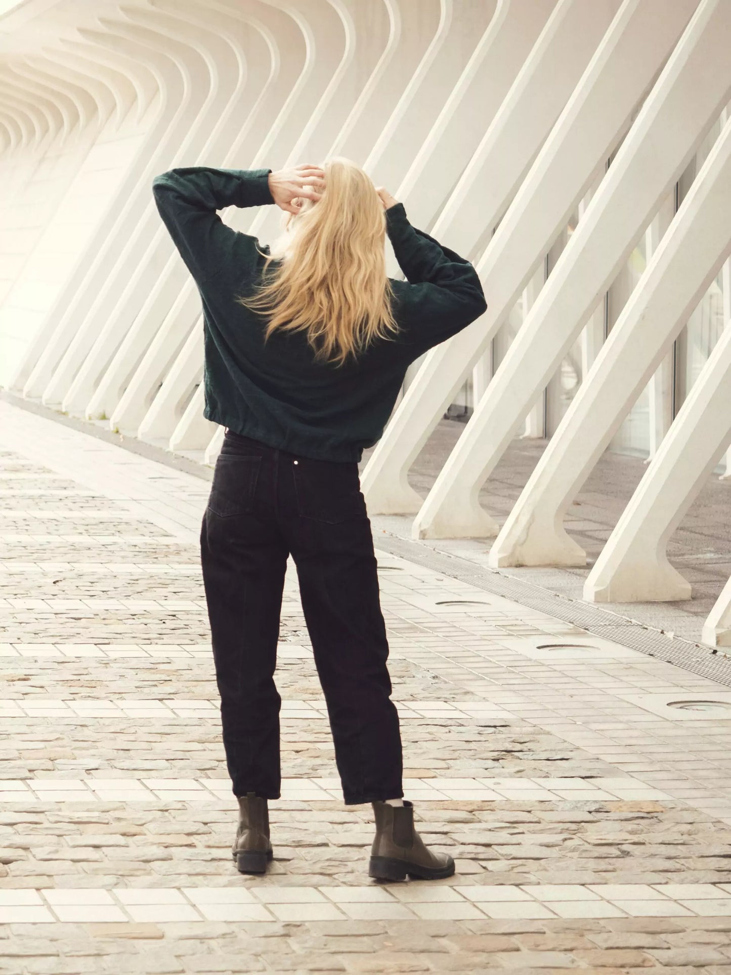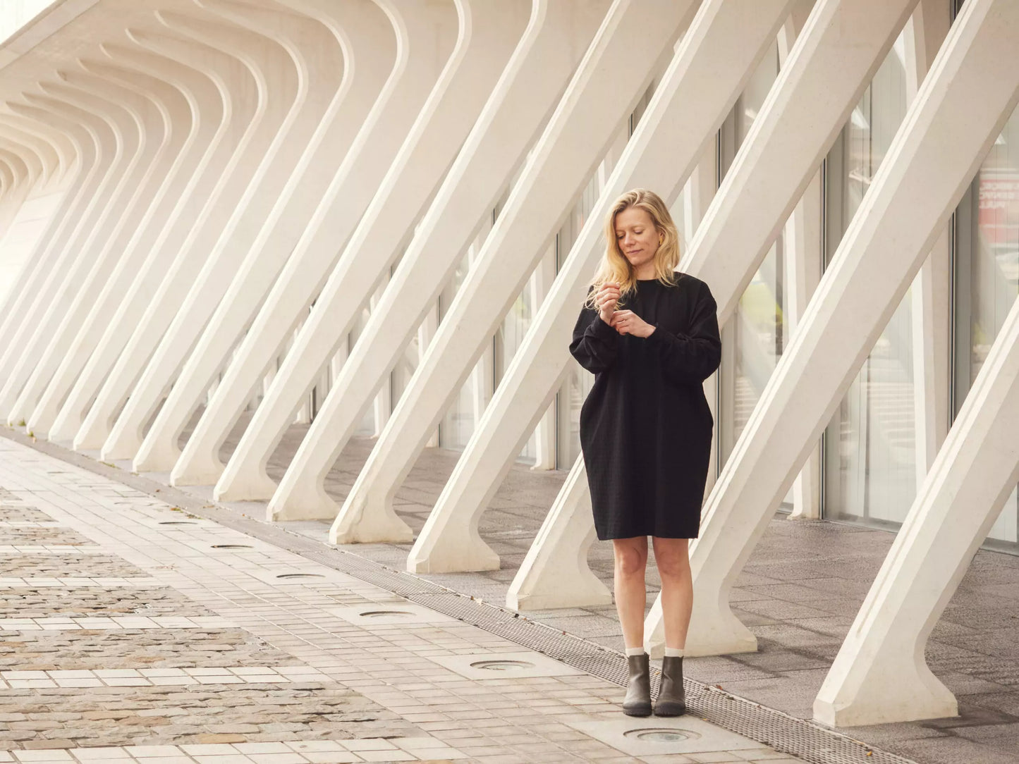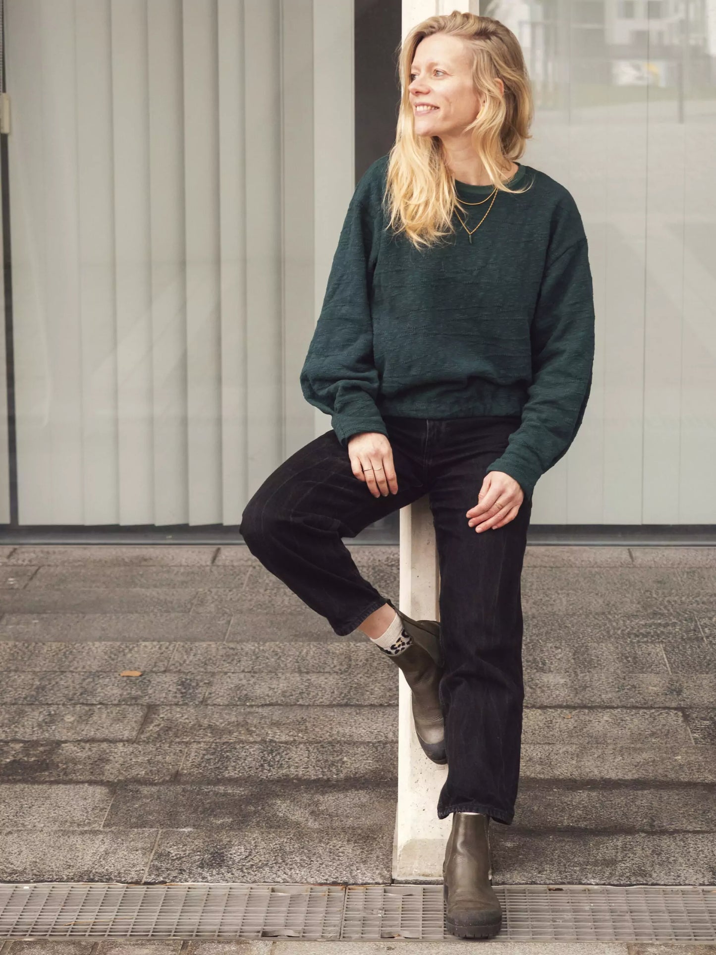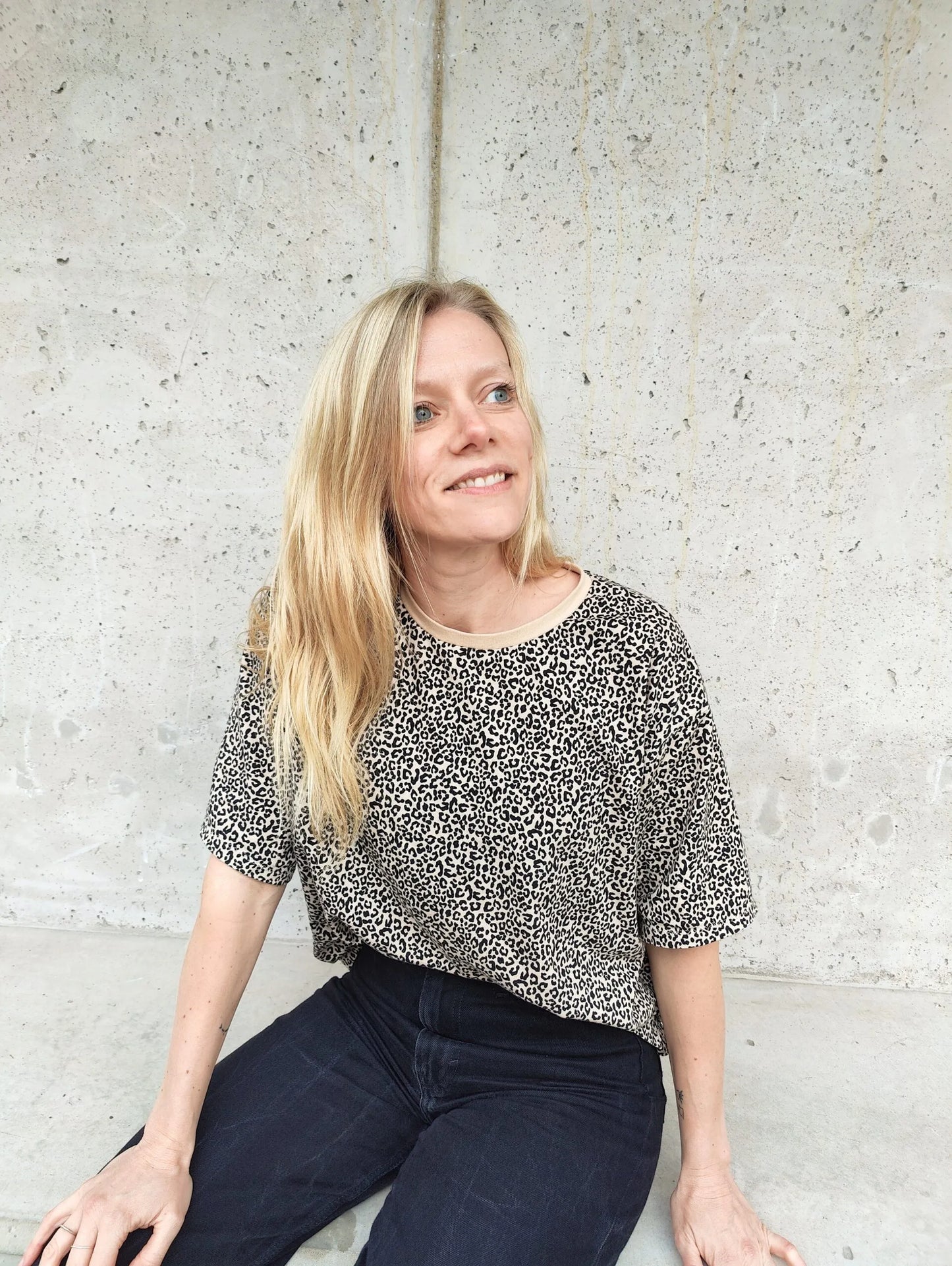 Rafi is een patroon voor een oversized T-shirt of jurk, ontworpen voor rekbare stoffen. Het valt wijd met dropped shoulders en heeft een eenvoudige, ronde halslijn. Maak een heel eenvoudige versie van de T-shirt die op een half uurtje in elkaar zit. Of kies voor een lange jurk met split, dichtgestikte lange mouwen met knoopje erop, zakken in de zijnaad en een lint in de taille. Er zijn zoveel opties dat elke jurk of shirt er telkens anders uit ziet. Eenvoud met een tikkeltje extra, dat is Rafi.
