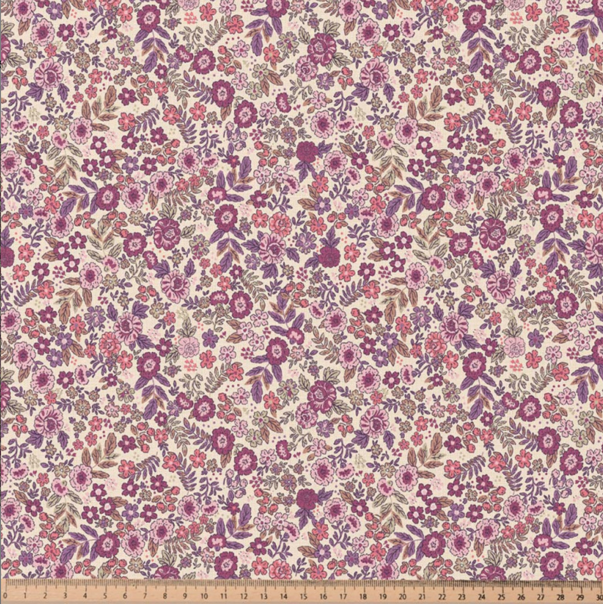 Barbara Flowers Ecru Violet - Poplin Katoen