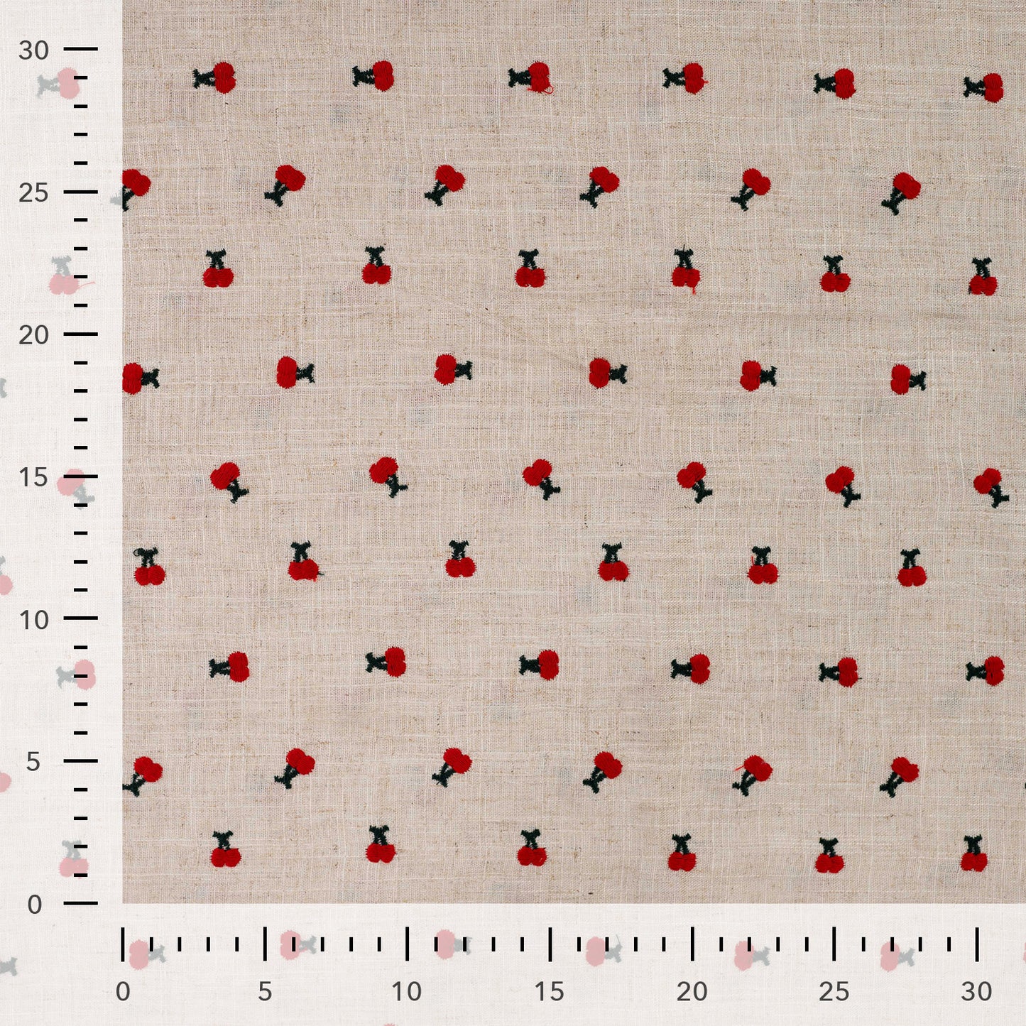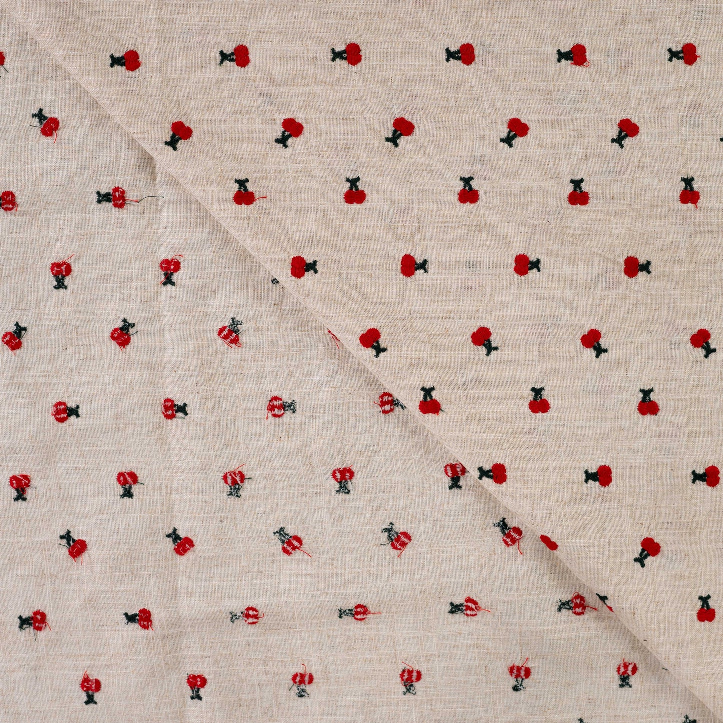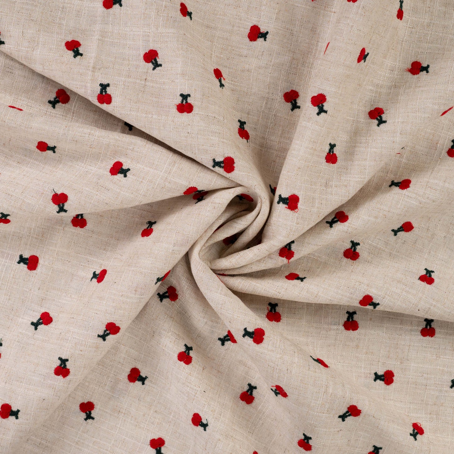 Linnen kersen Embroidery Bloemen - Sand