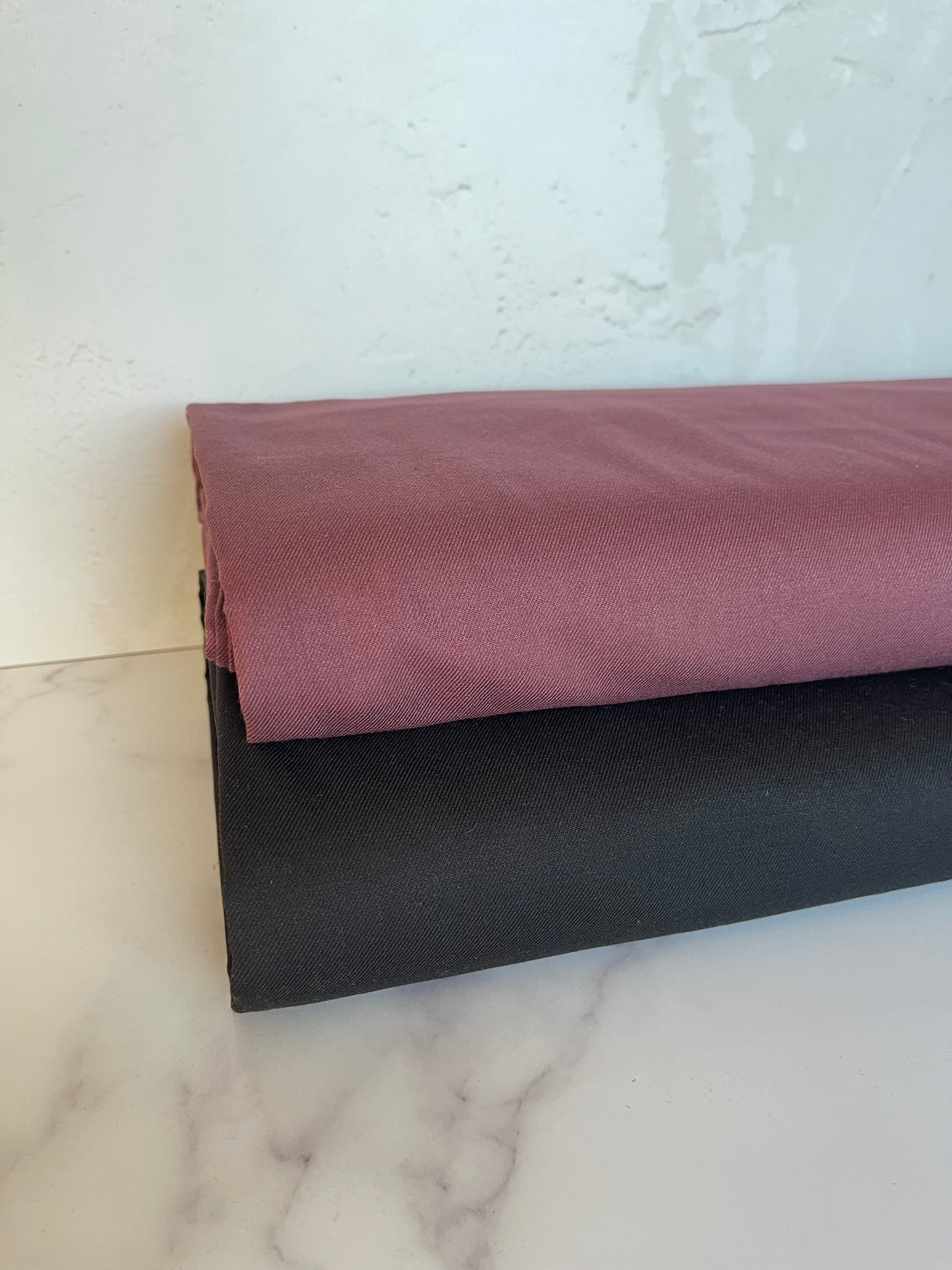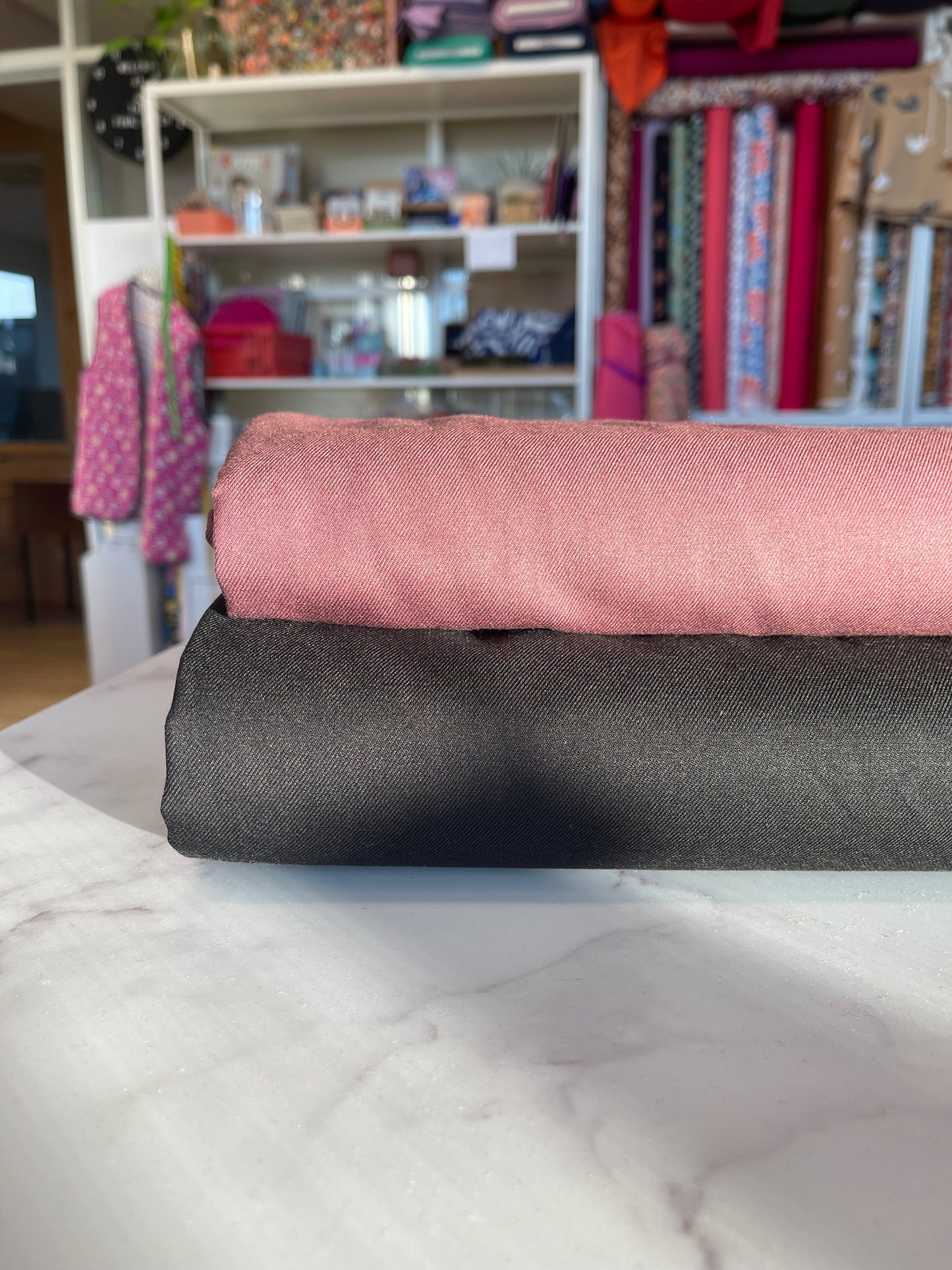 Geweven Bamboo - Mauve Wine Deze stof is gemaakt uit bamboo en gerecycled polyester. Er zit een klein beetje rek in de stof. De stof is perfect voor broeken, pakken, blazers, rokken of jurken. De stof valt soepel door en schijnt niet door.