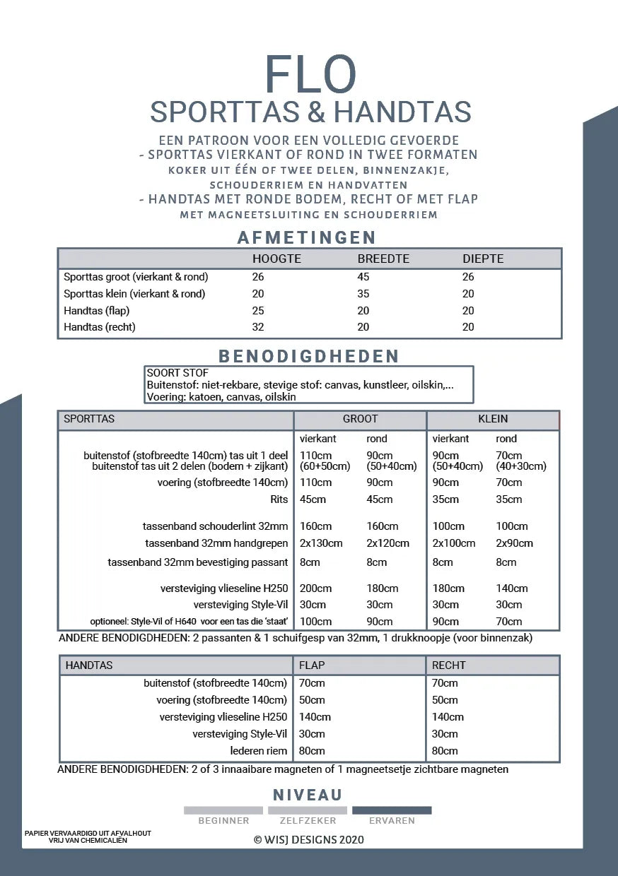 Flo sporttas & handtas – Papieren naaipatroon - WISJ