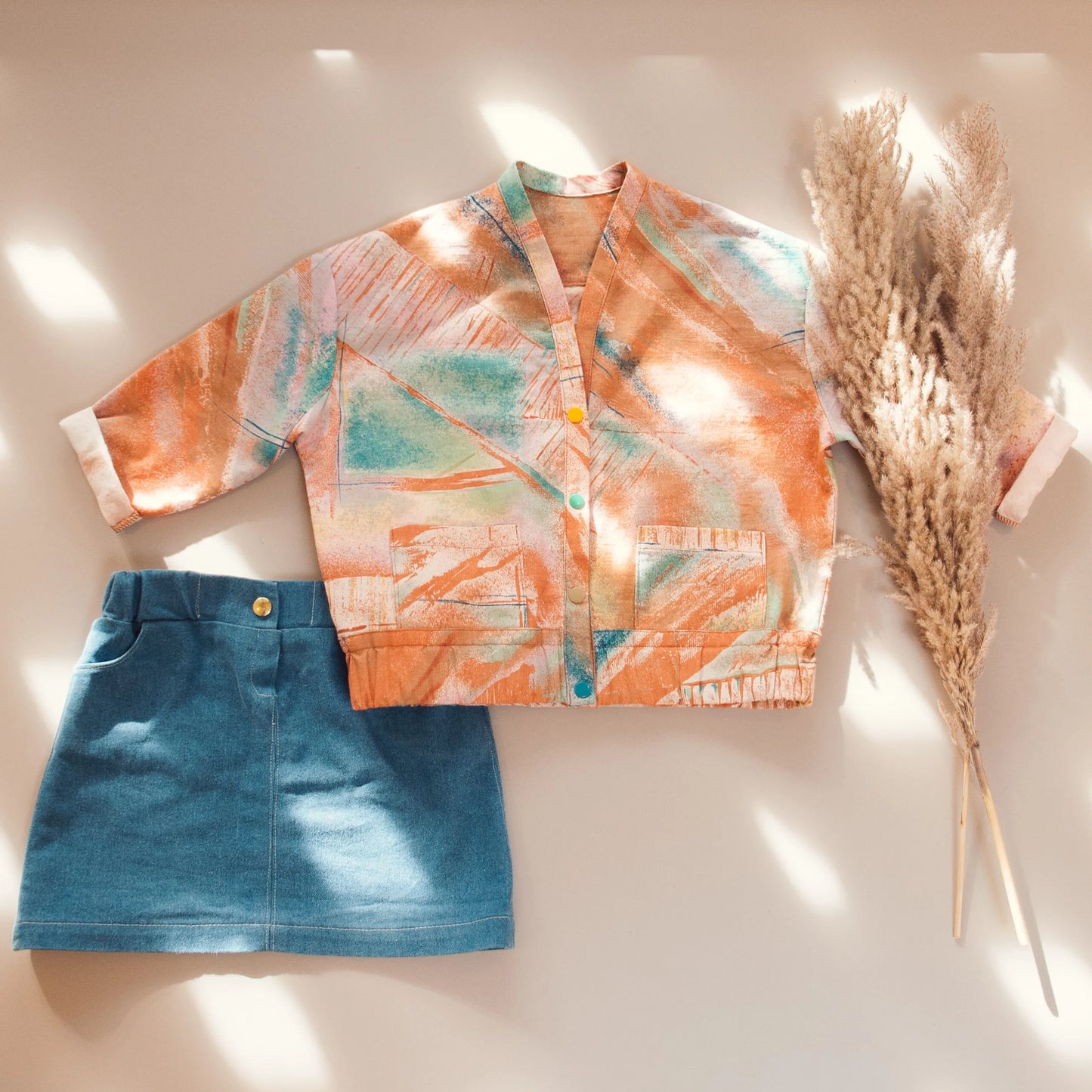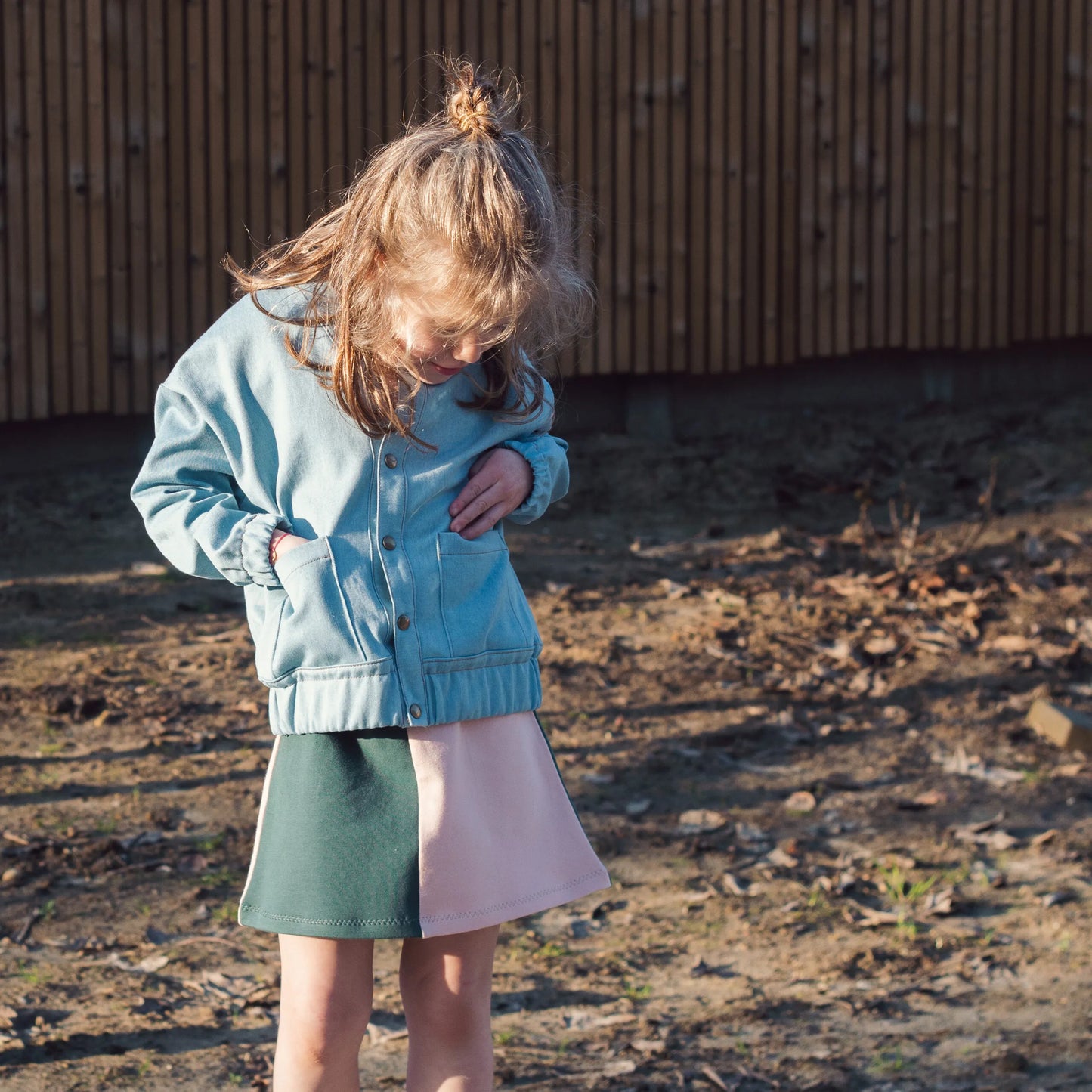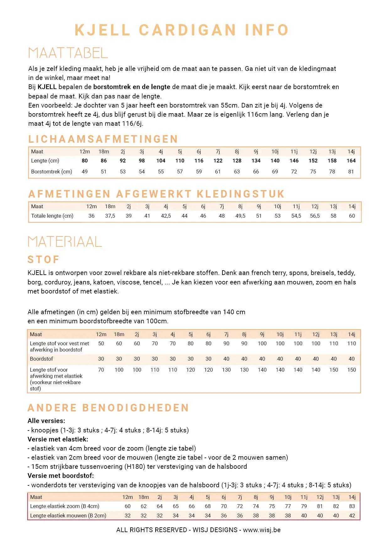 Kjell is een wijde, stoere, boxy cardigan in maten 1 tot 14 jaar. Een allround vestje met uitgesneden hals, knoopjes, zakken en een rugpas. Kjell is ontworpen voor zowel rekbare als niet-rekbare stoffen. Denk aan french terry, spons, breisels, teddy, borg, corduroy, jeans, katoen, viscose, tencel, … Maak hem met boordstof aan polsen, hals en zoom waardoor het aanleunt bij een trui. Of kies voor een versie met elastiek in de zoomboord en aan de polsen en halsboord uit dezelfde stof als het vestje zelf waardoor Kjell de uitstraling van een stoer jasje krijgt.
