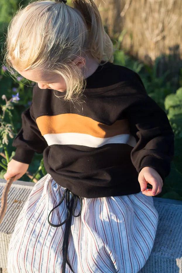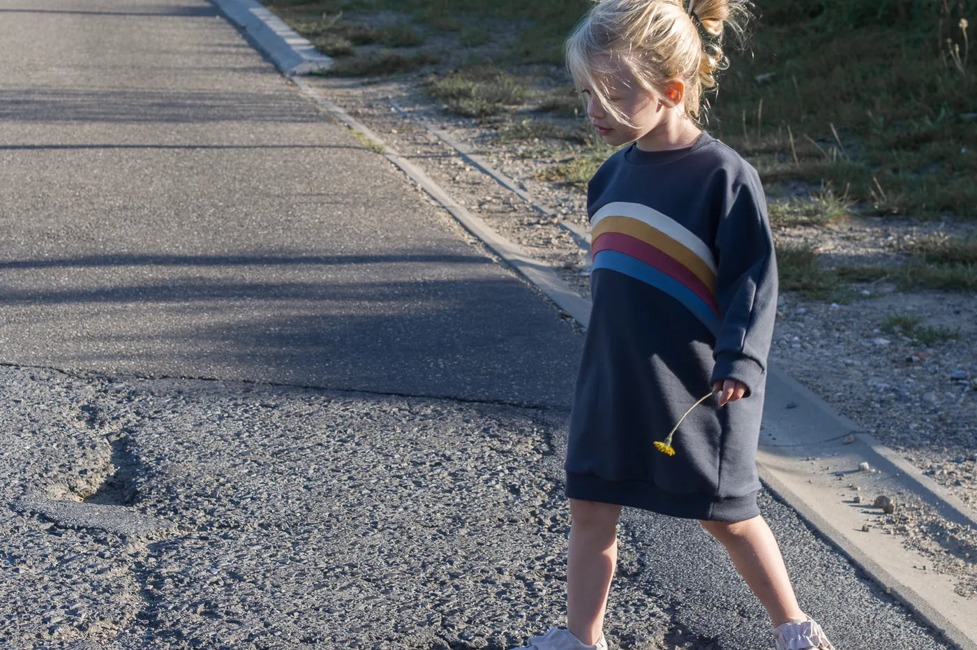 Teddy is een papieren naaipatroon & tutorial voor een sweater en twee soorten jurkjes in maten 9-12m tem 14j en een kruippakje in maten 9-12m-2j.