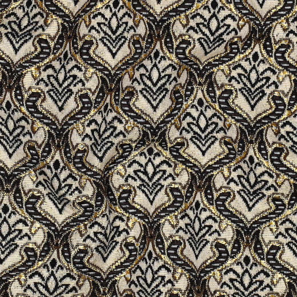 Abstract Gold Gobelin. Een stevige stof zonder rek. Perfect voor kledingstukken die structuur nodig hebben zoals een jasje, aansluitende jurk of minirok. De stof is ook geschikt als meubelbekleding.