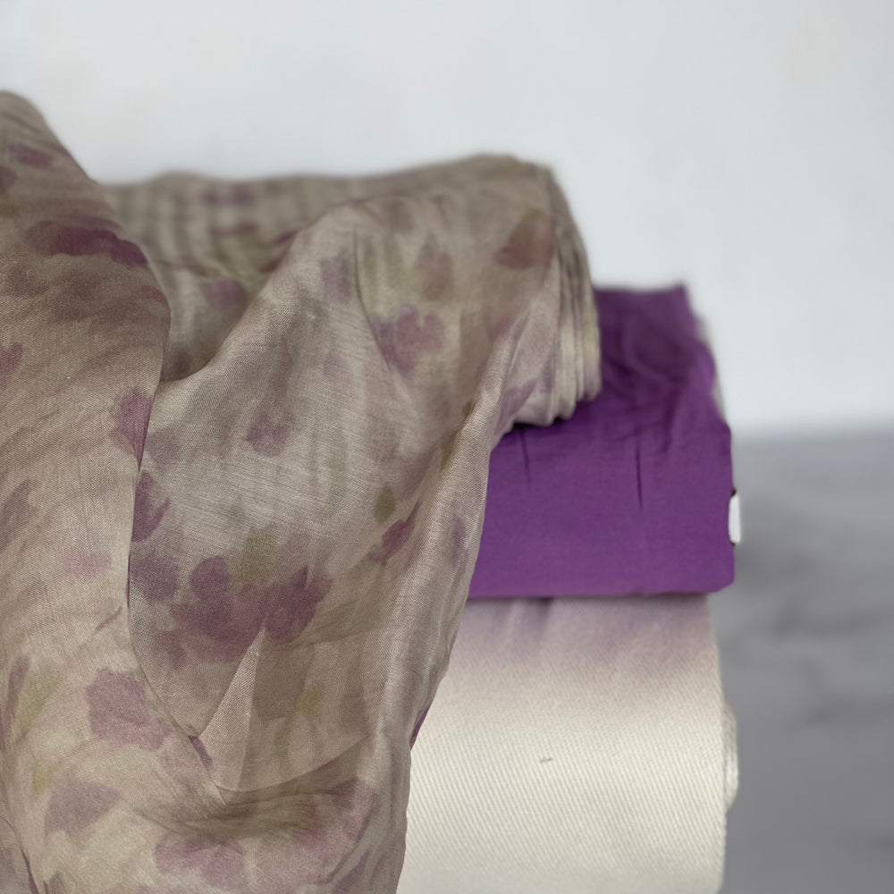 This woven fabric with an elegant leaf design is made from 75% Tencel and 25% nylon, providing a silky and ultra-light texture. With a width of 150 cm and a weight of only 45 gr/m2, the fabric feels luxurious and soft on the skin, ideal for creating refined blouses, dresses, and scarves. The Tencel fibers add breathability and eco-friendly properties, while the nylon provides extra strength and shape retention. The leaf pattern gives the fabric a natural and sophisticated look. Certified by OEKO-tex Standard 100, this fabric is safe for the skin and free from harmful substances.