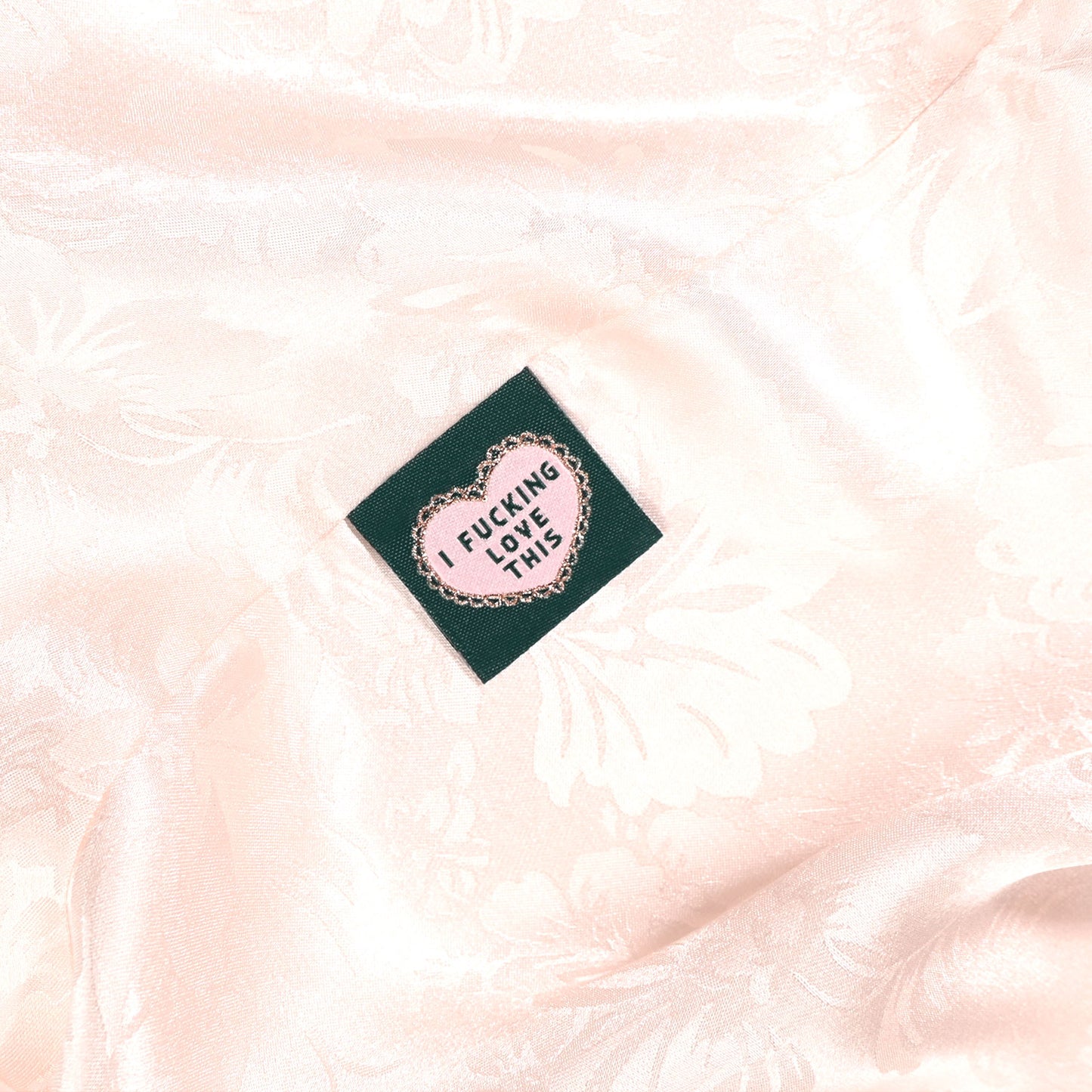 "I Fucking Love This" - 26mm x 30mm (including seam allowance) | Forest Green, Pale Pink and Metallic Rose Gold