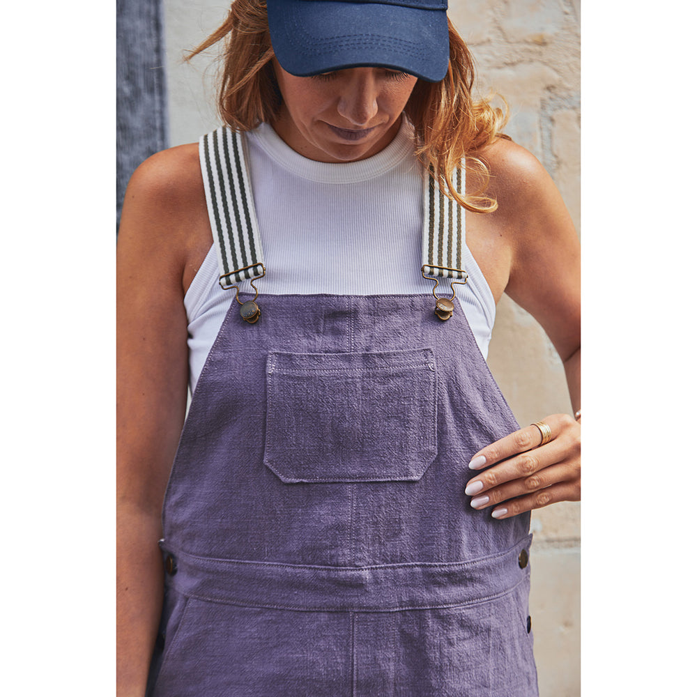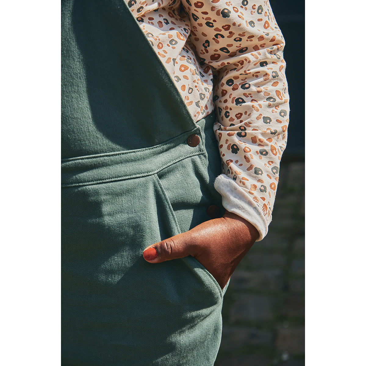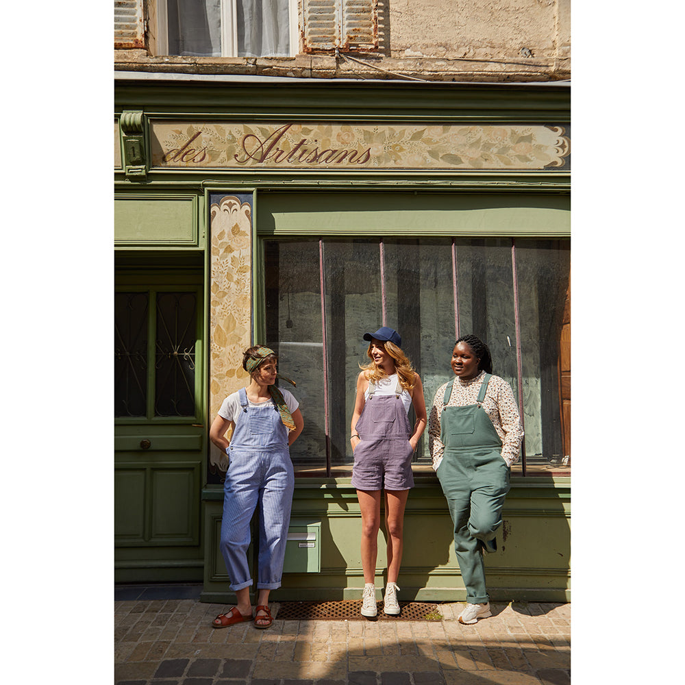 3-length straight-leg dungarees pattern: pants, Bermuda shorts or shorts. 2 strap versions: adjustable with buckles+buttons (Version 1), adjustable with multi-position buttons (Version 2). Side openings. Fake fly. Front, bib and back pockets. Optional hammer pocket for trouser version. Lined bib. A comfortable timeless garment for all seasons