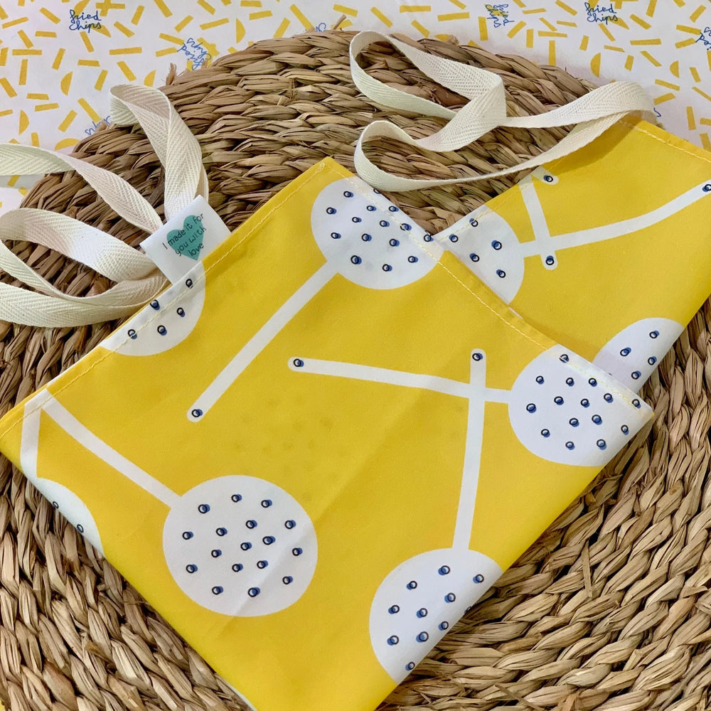 Je hebt de volgende dingen nodig voor het maken dit paneel:Β Volumevlies, witte stof, koord, lint, klittenband and knoopjes.