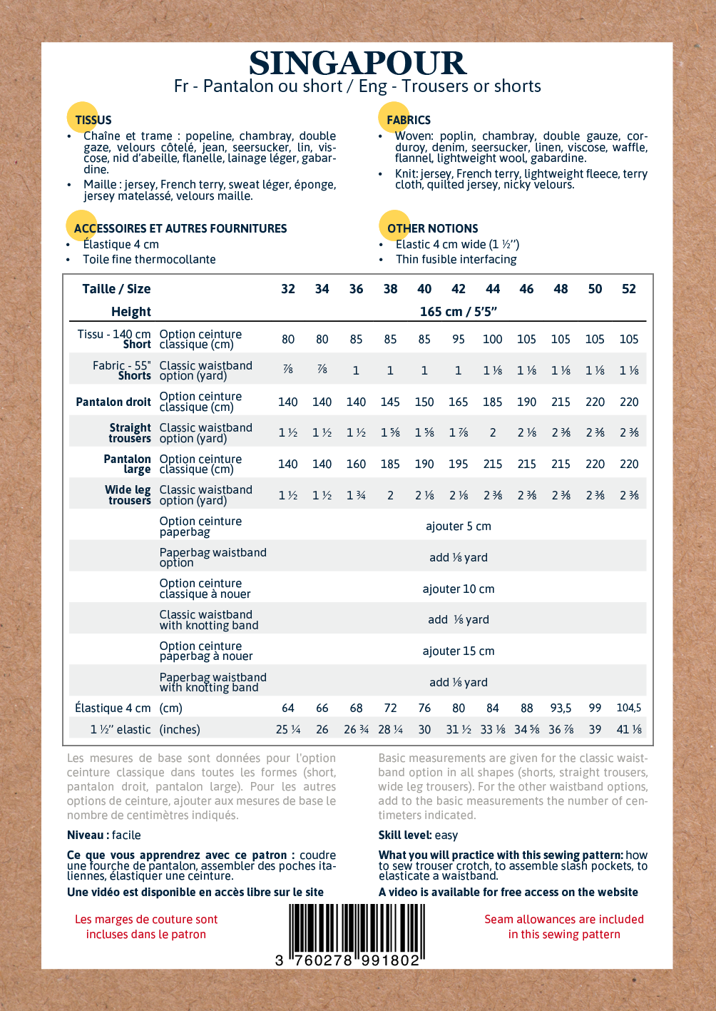 SINGAPOUR - Trousers and shorts - Women - Paper Sewing Pattern Ikatee